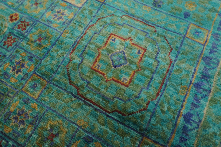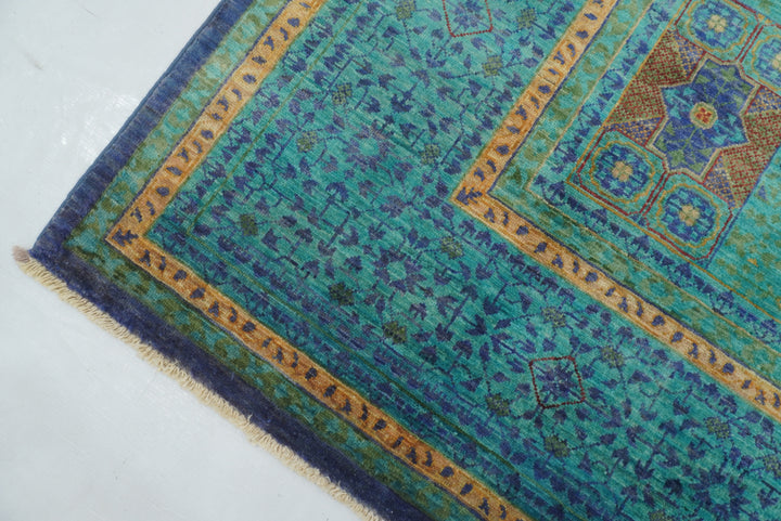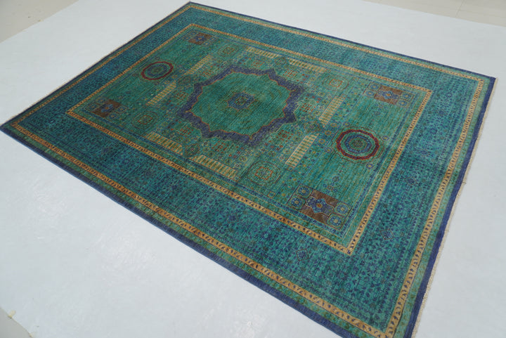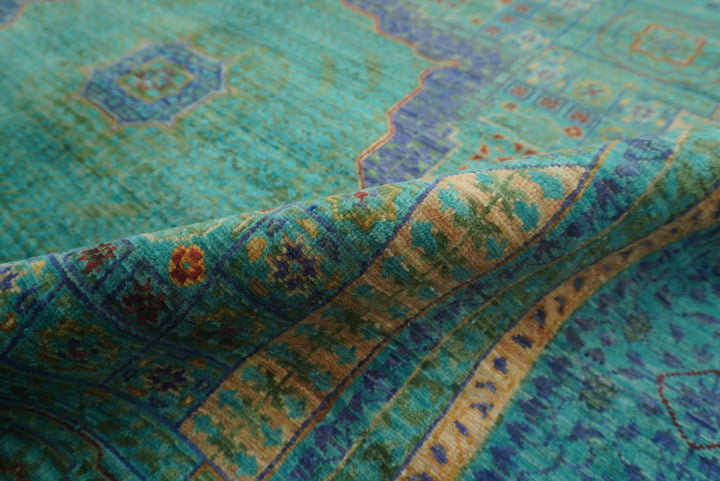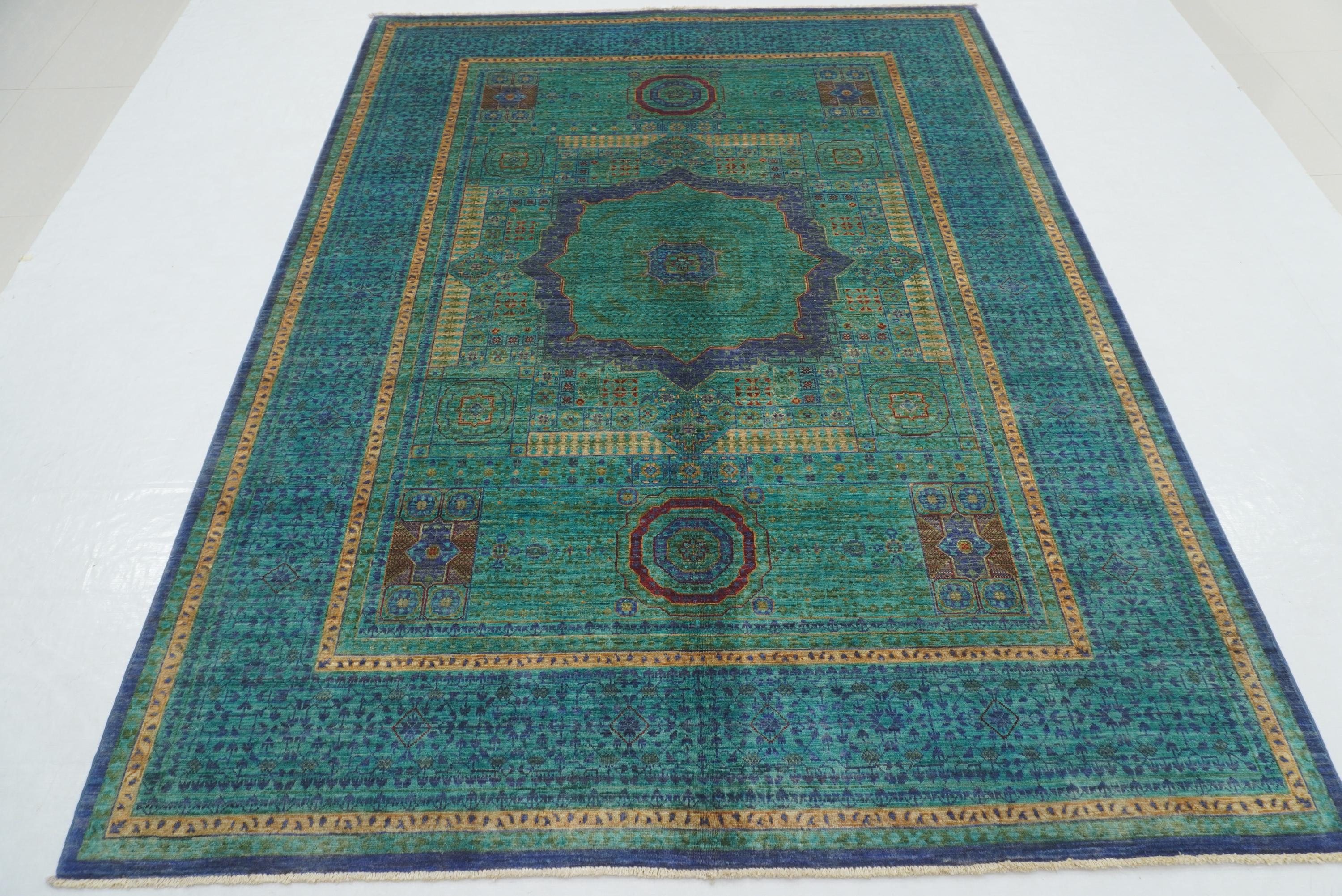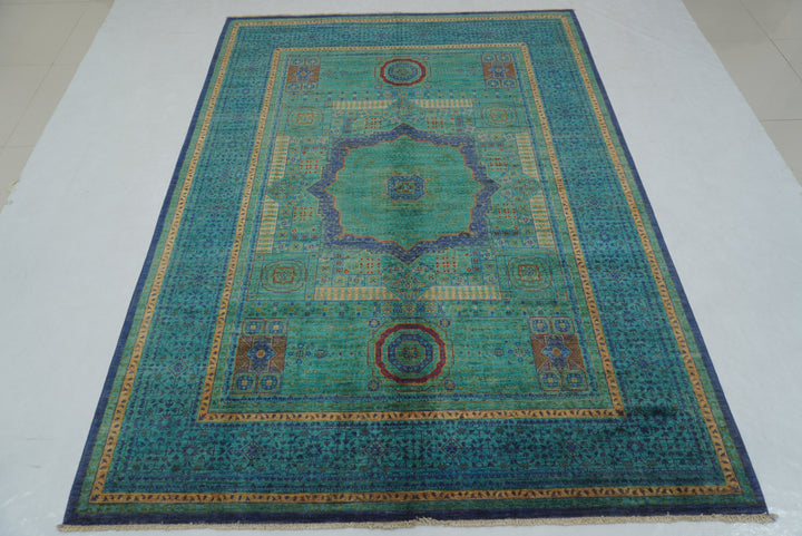 6x8 Turquoise Blue Mamluk Turkish Hand Knotted Medallion Rug