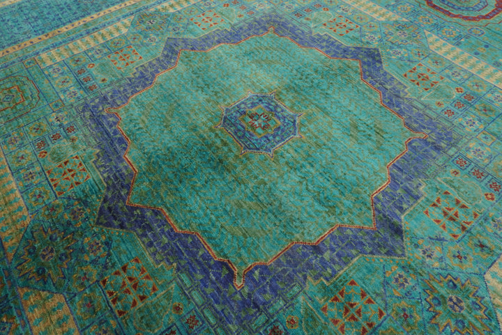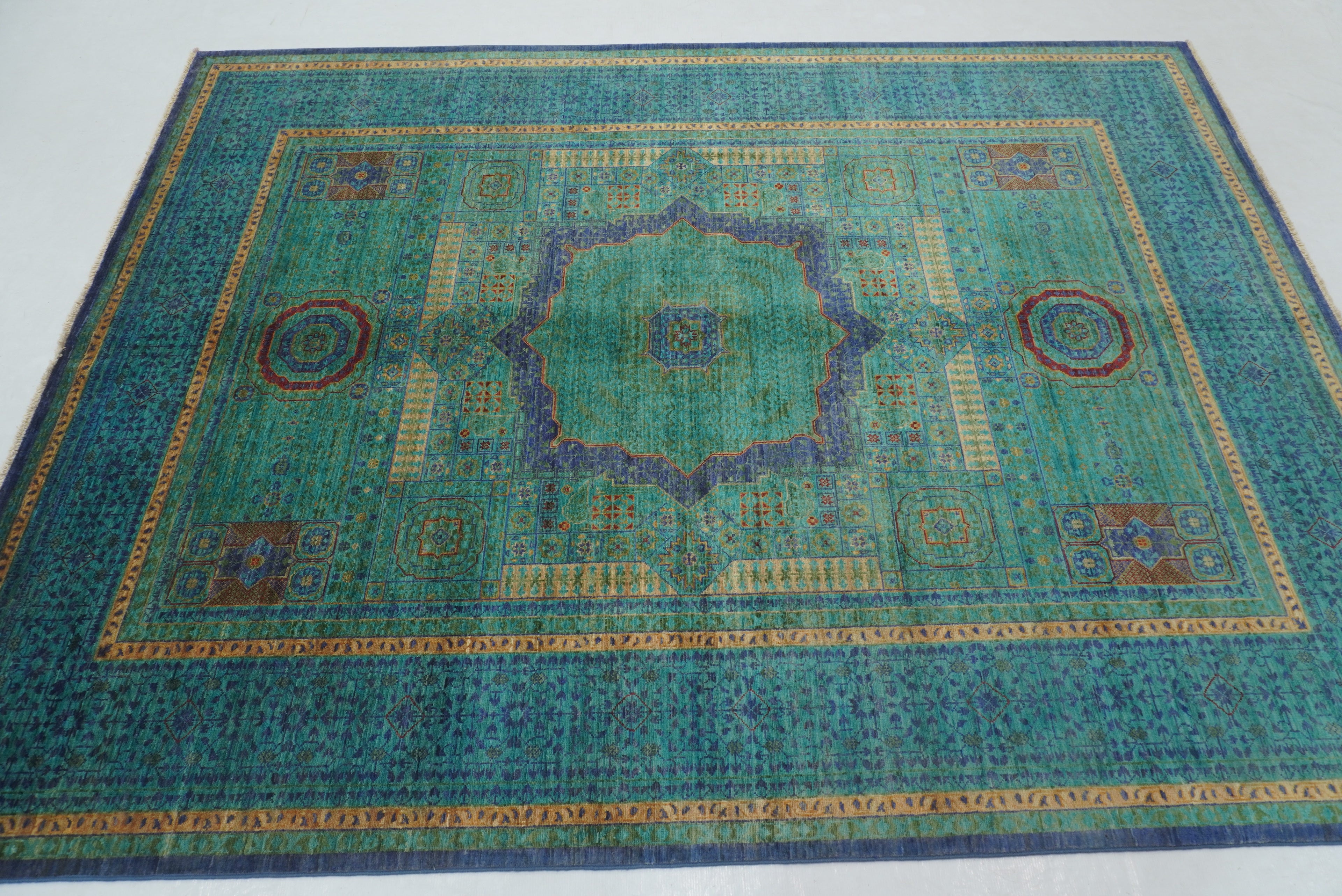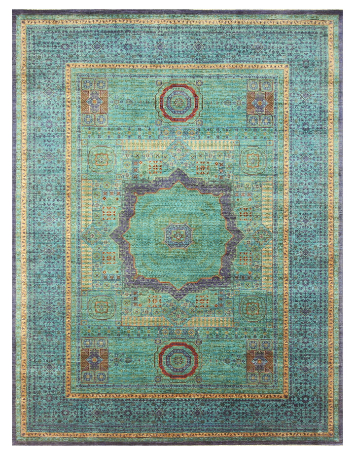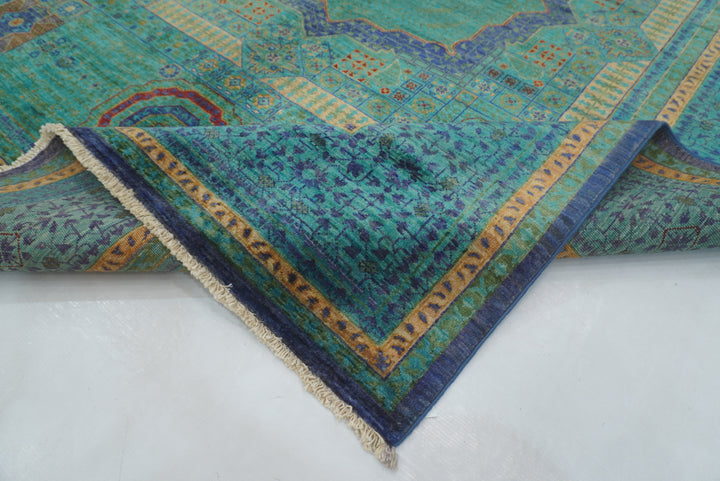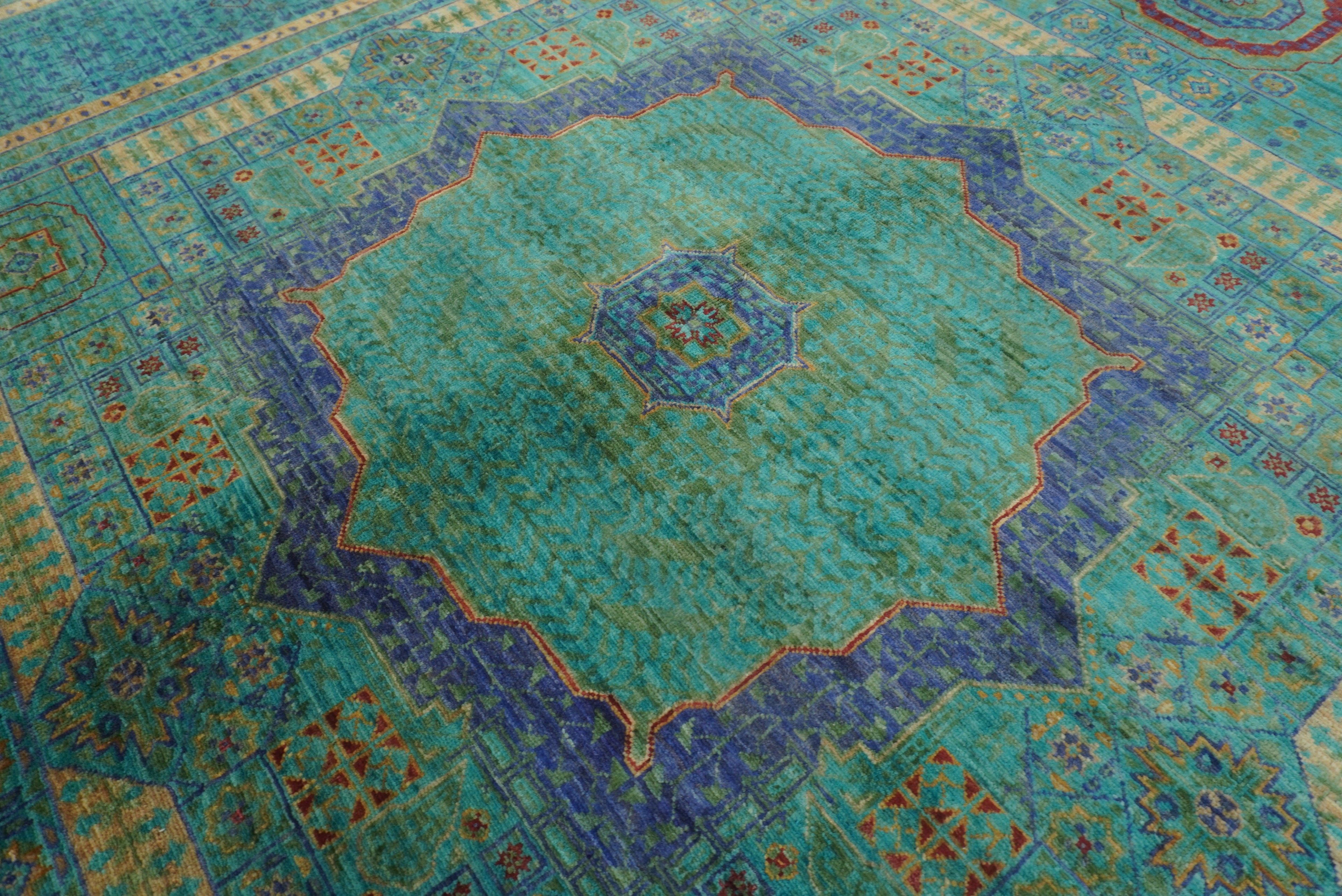 6x8 Turquoise Blue Mamluk Turkish Hand Knotted Medallion Rug