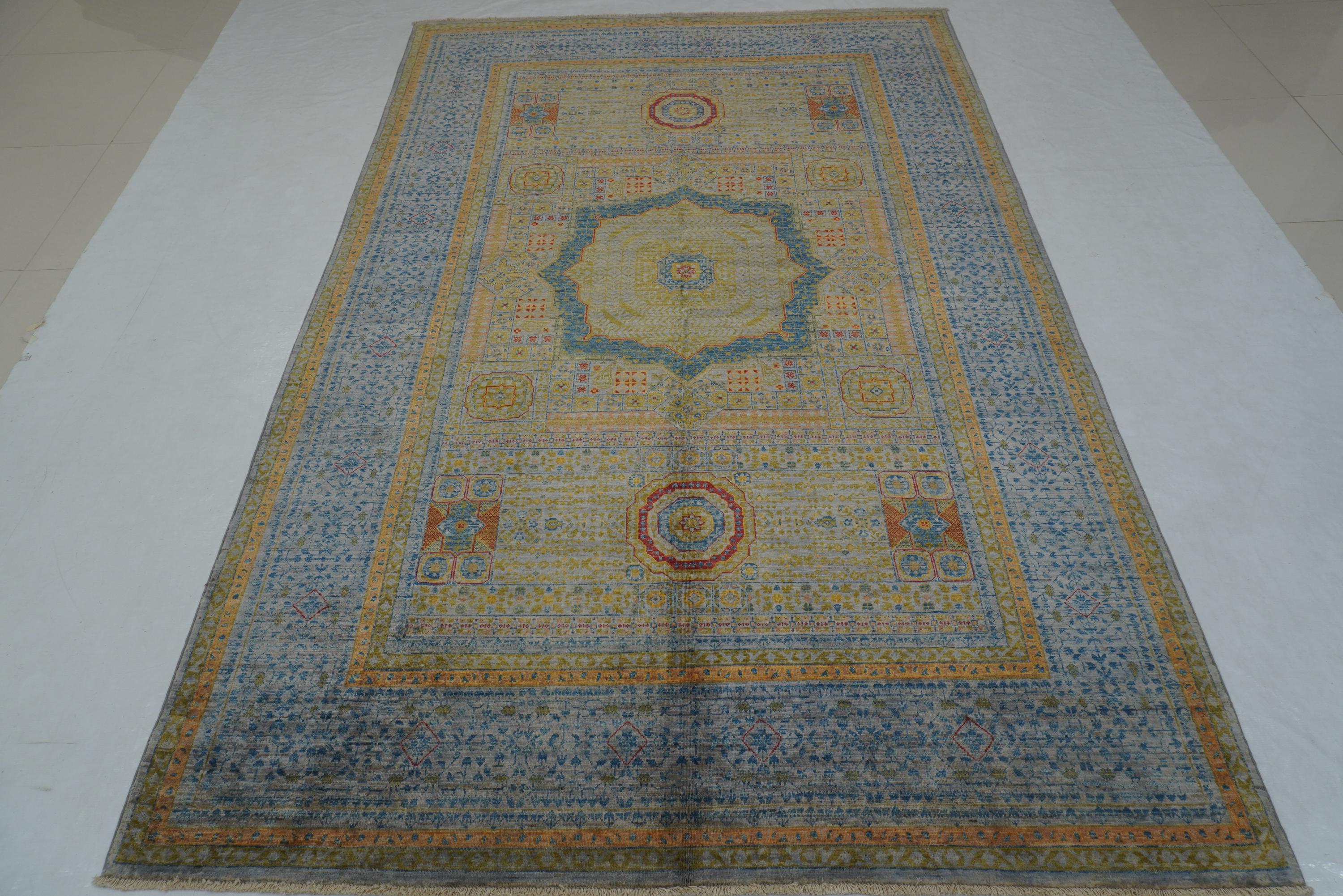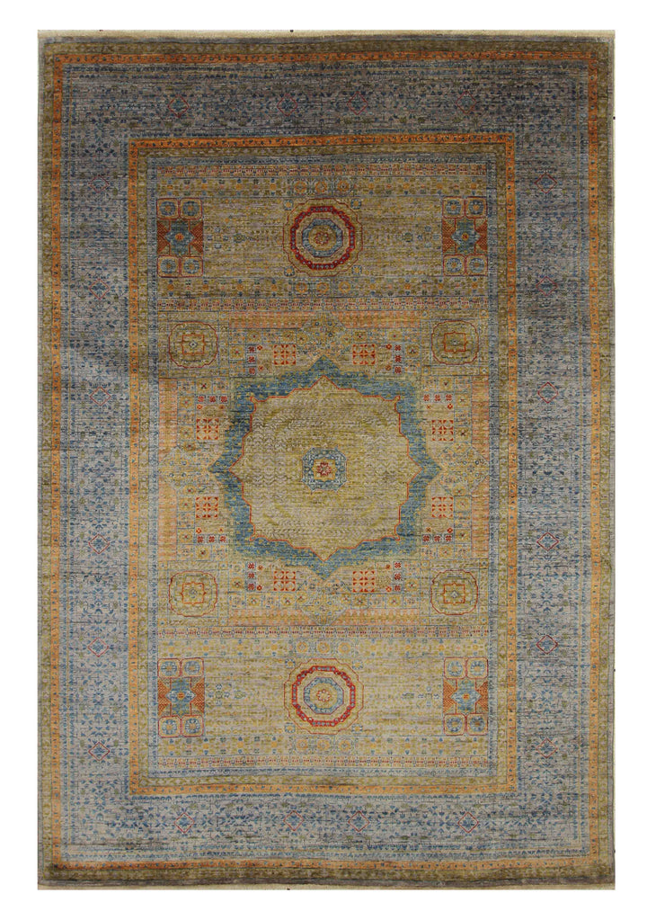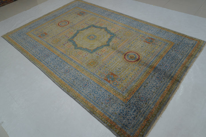 6x9 Blueish Grey Mamluk Turkish Hand knotted Medallion Rug
