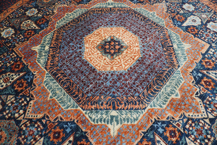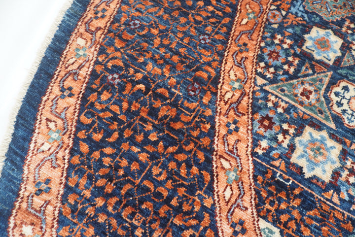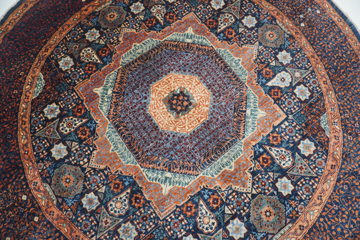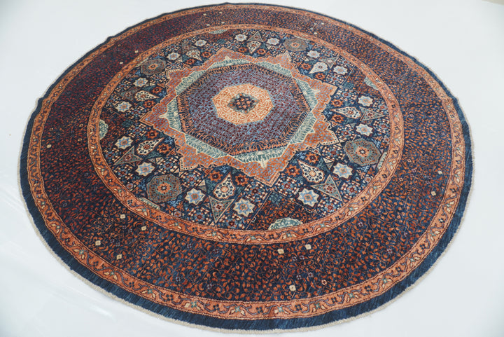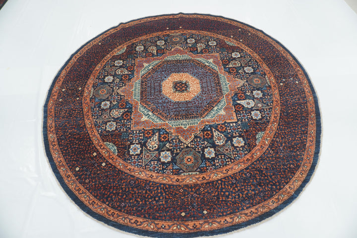 7'7"x7'9" Navy Blue Hand Knotted Mamluk Round Rug