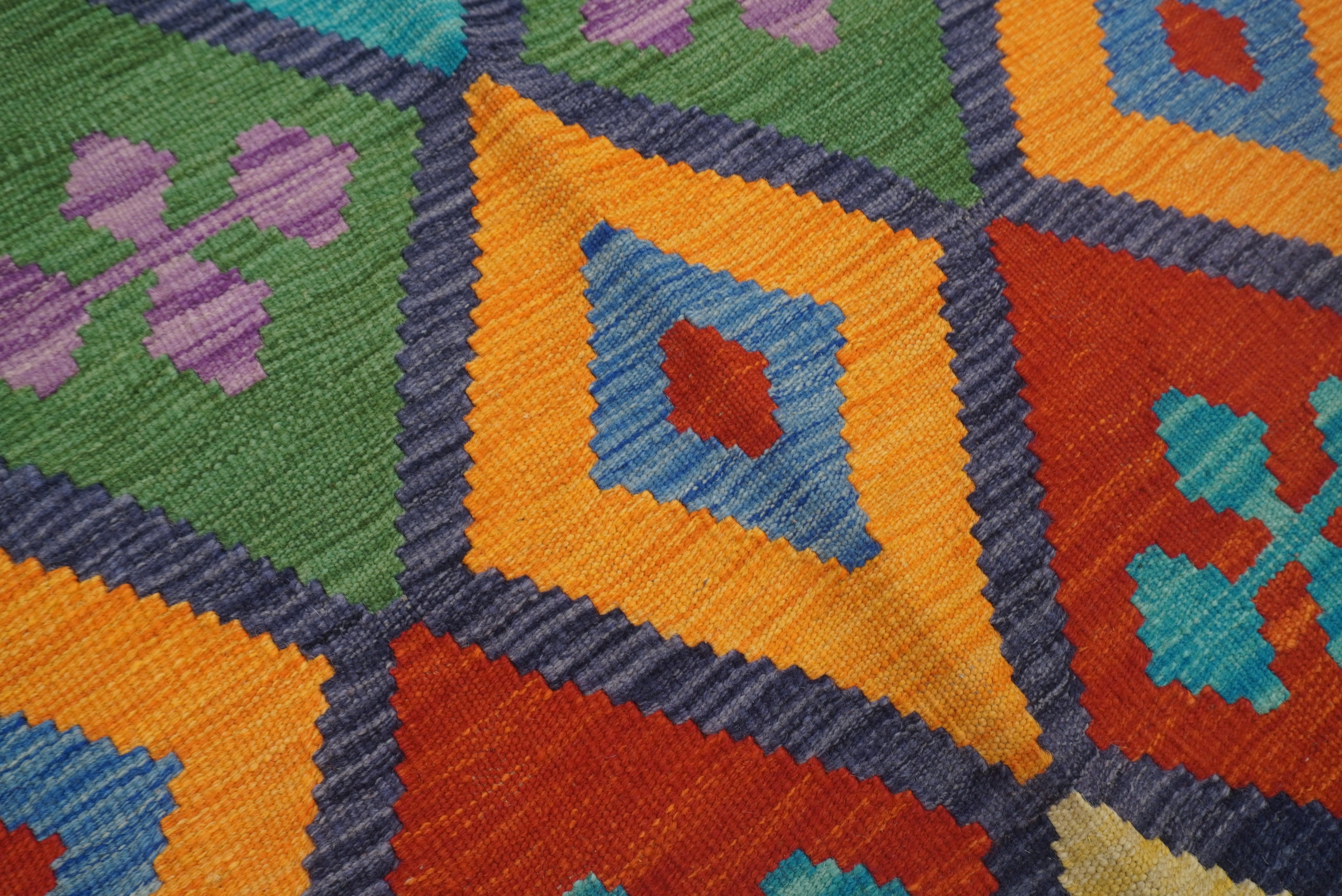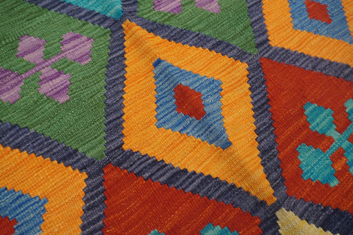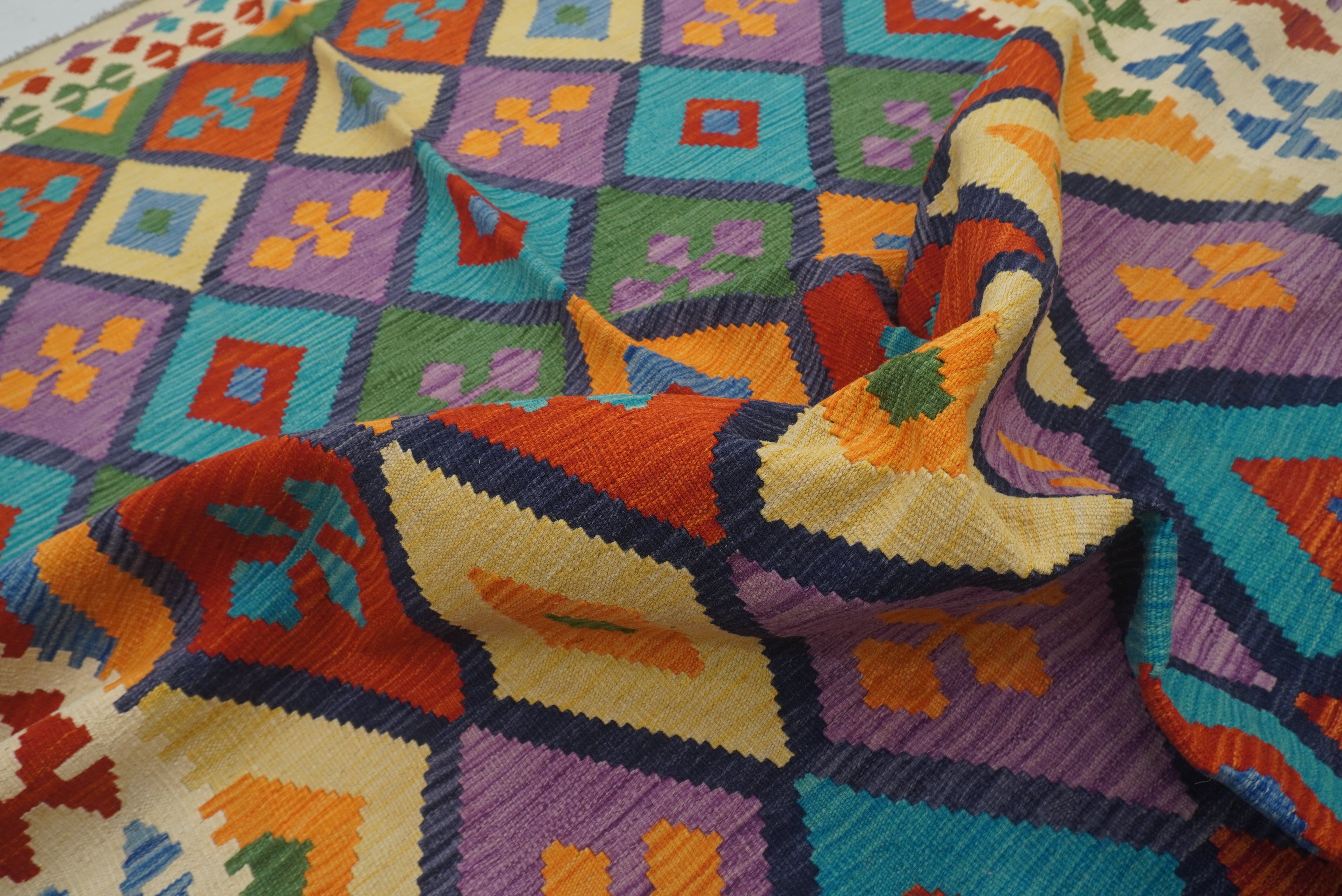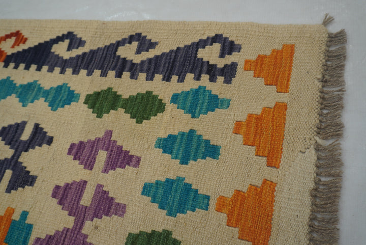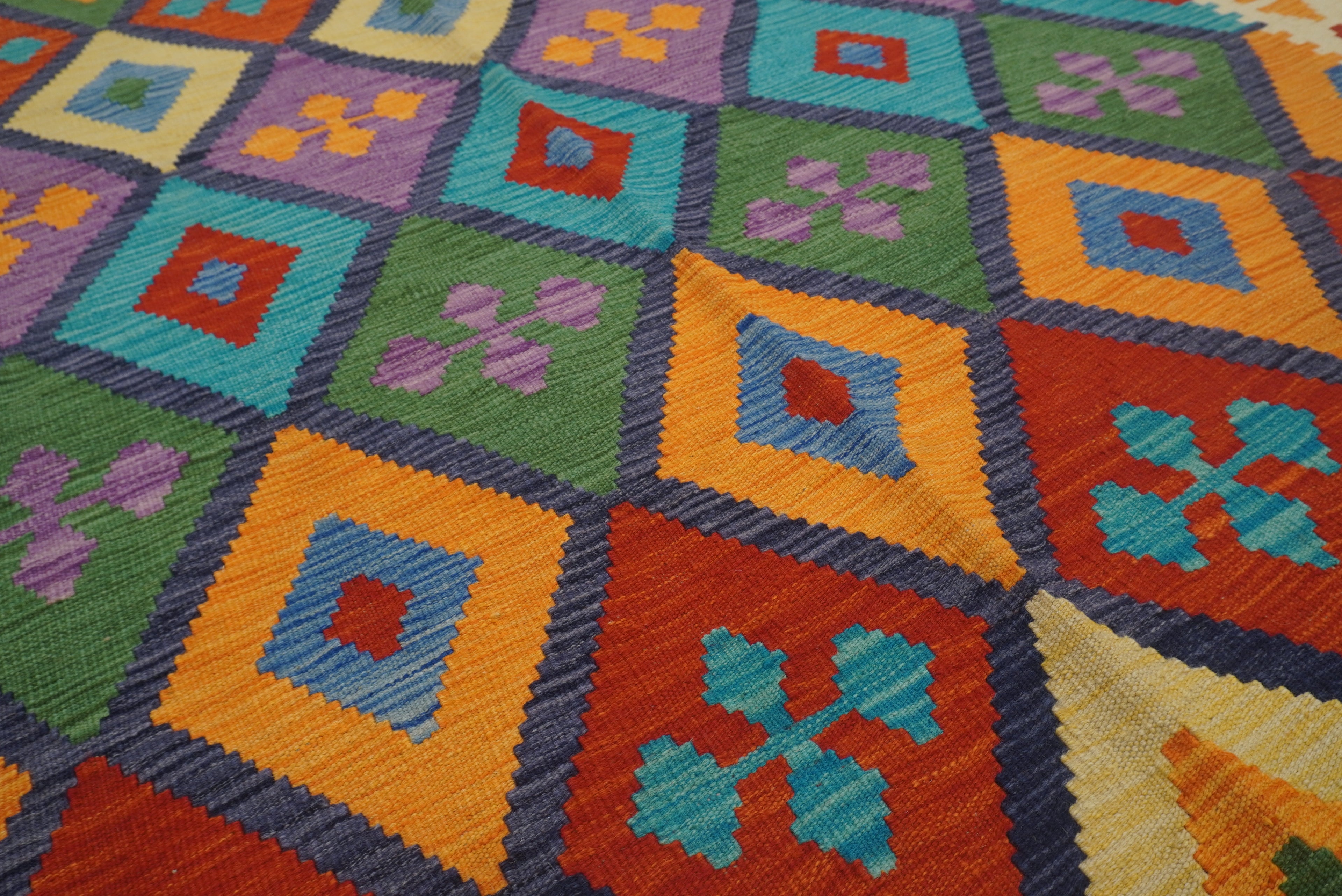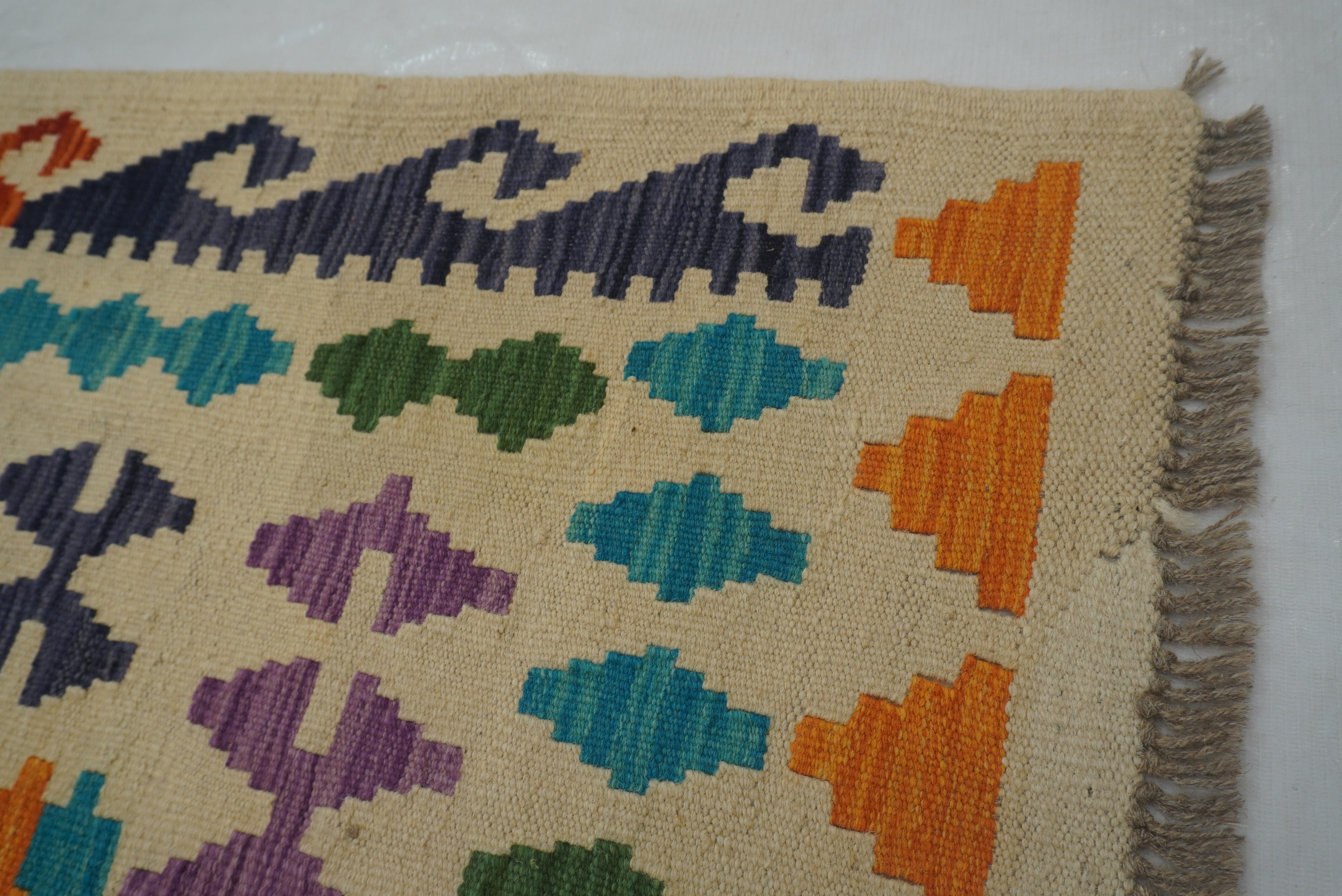 7x10 Beige Blue Kilim Afghan handmade Geometric Rug