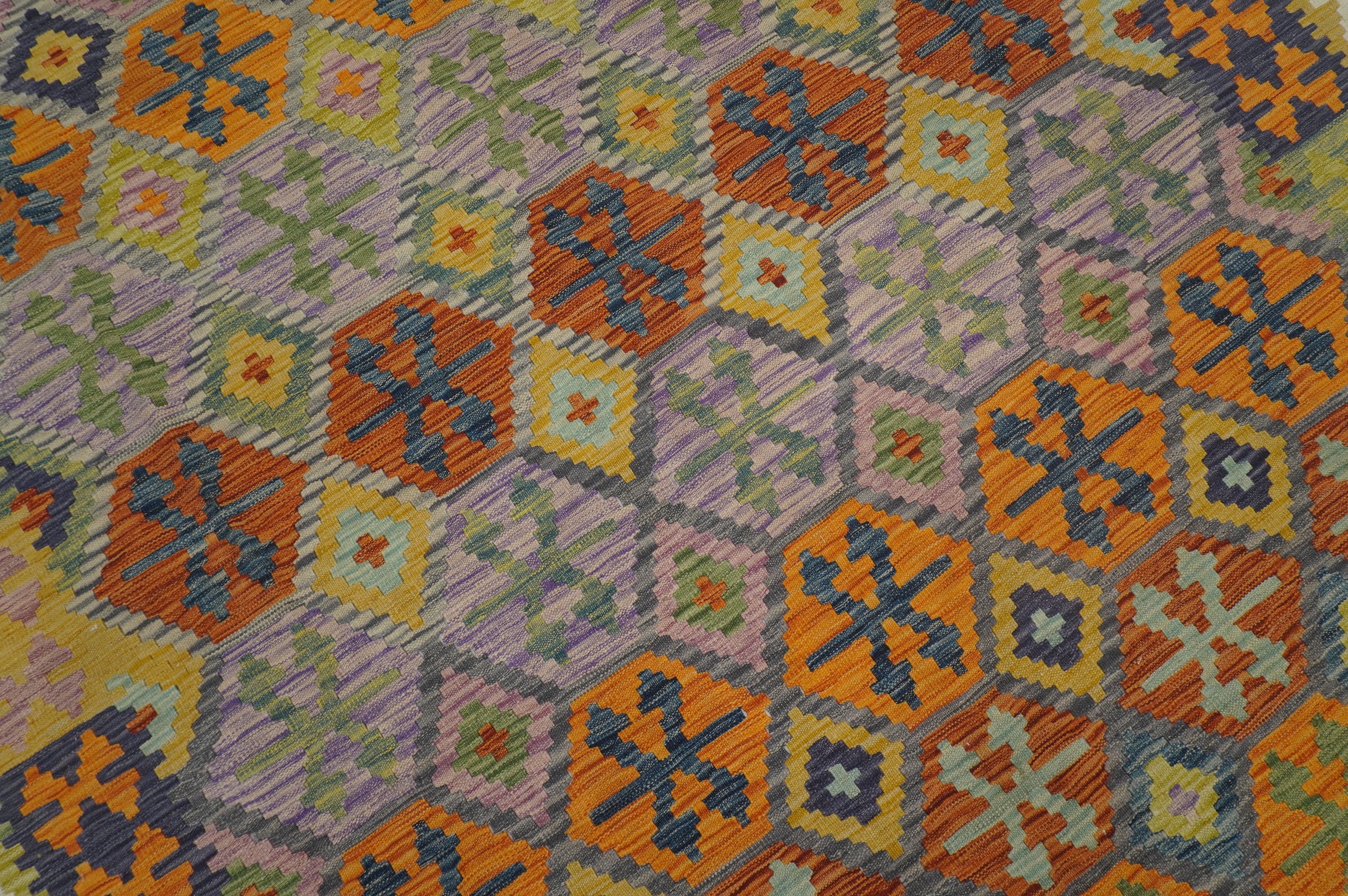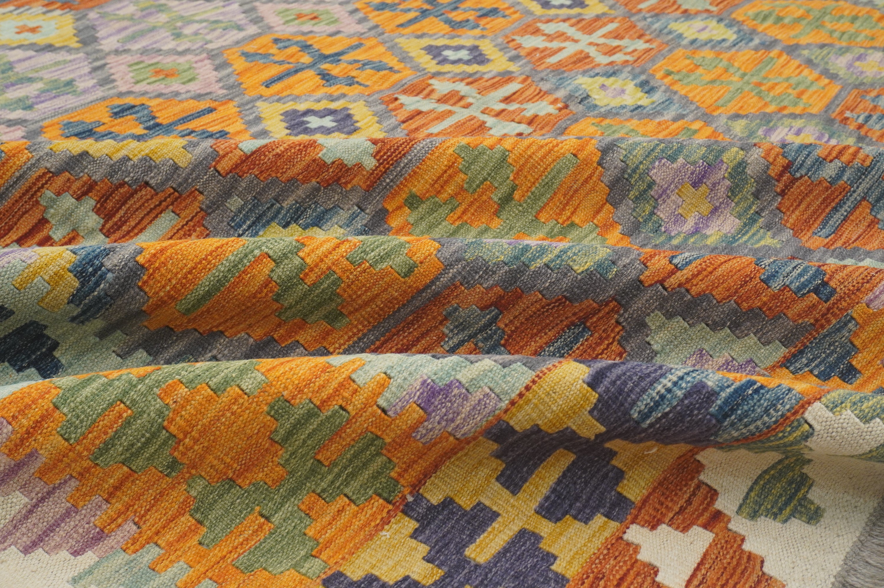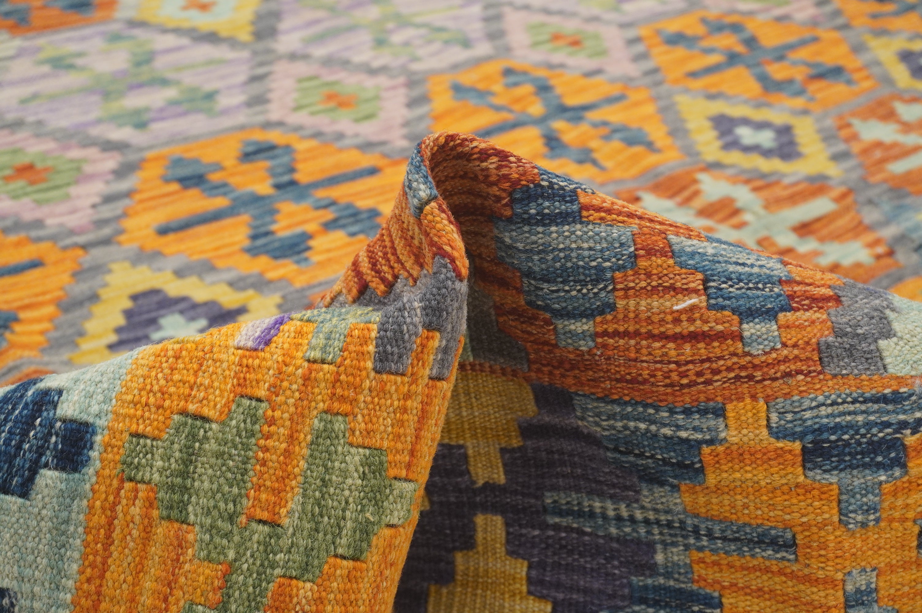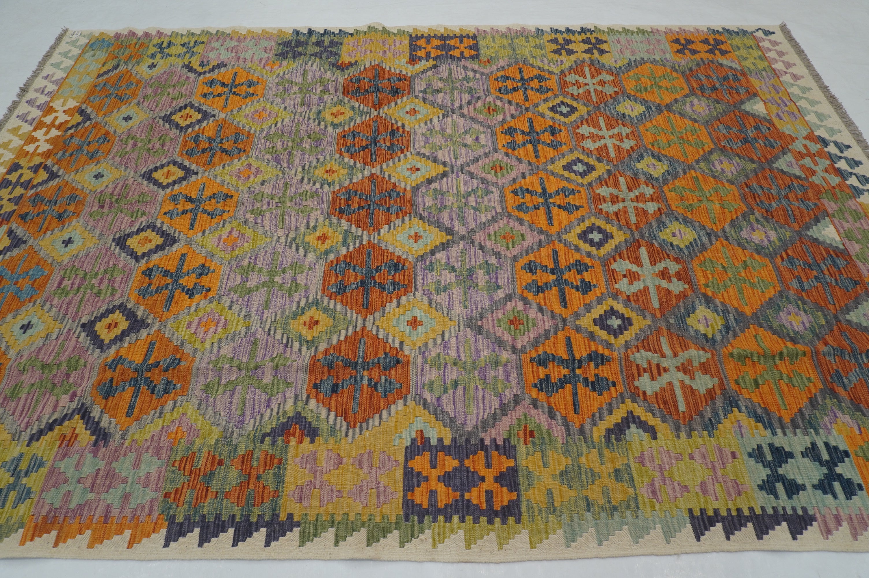 7x10 Gray Afghan Afghan Handmade Geometric Reversible Rug