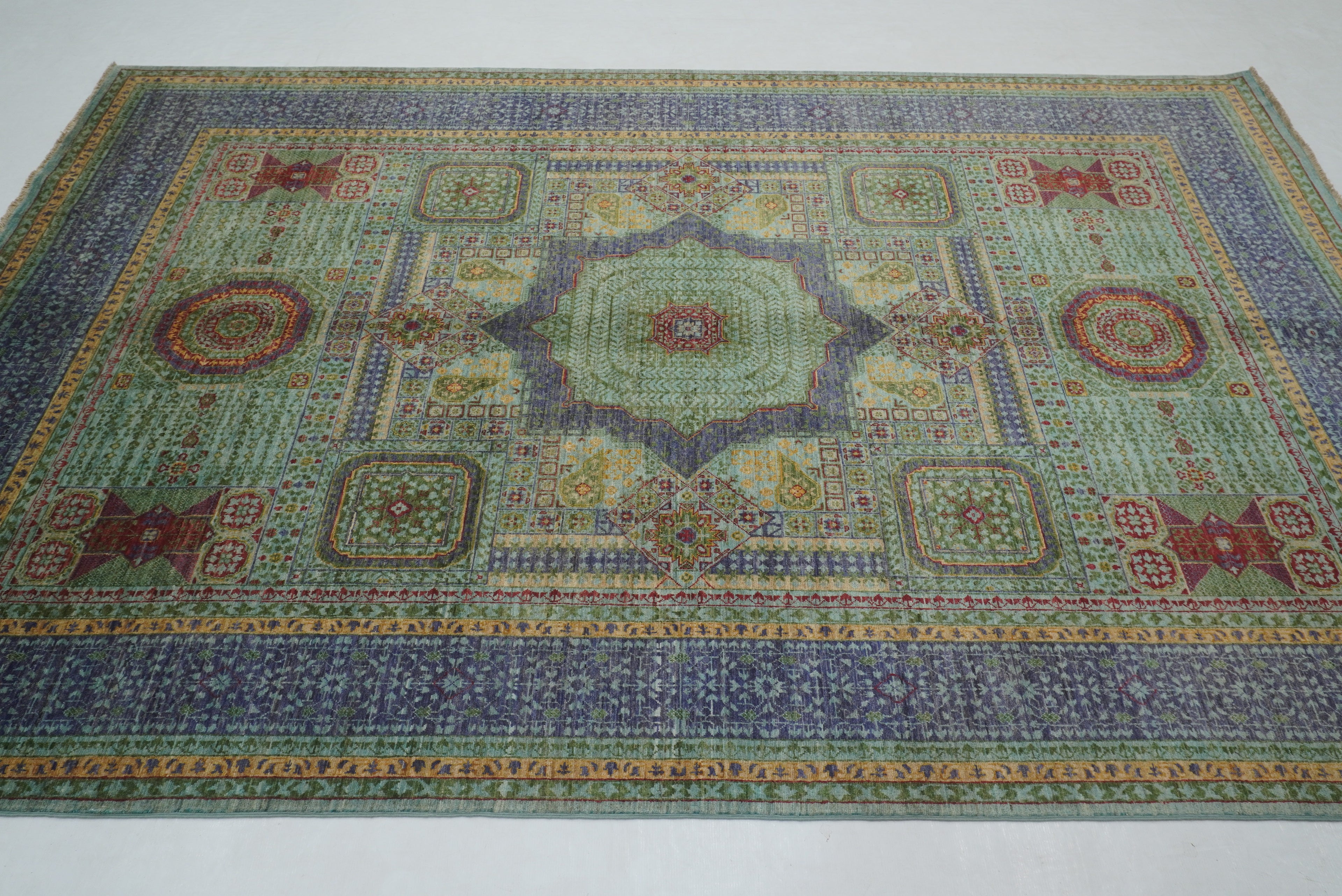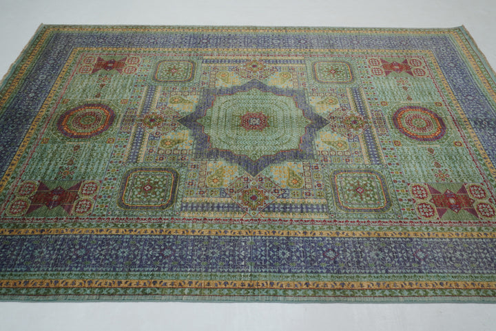 7x10 Soft Blue Mamluk Hand knotted Turkish Medallion Rug