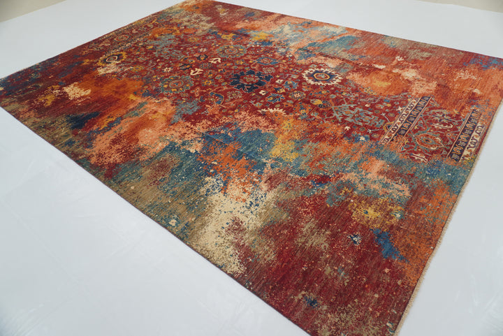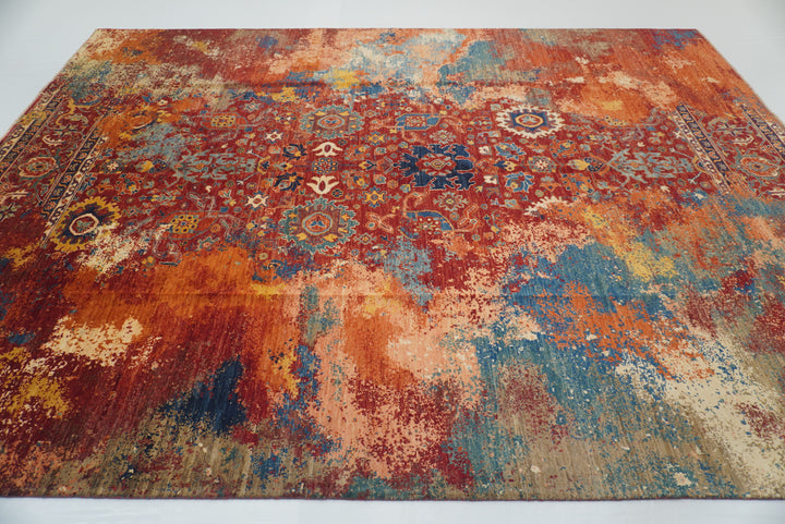 8'11"x11'11" Red Bidjar Afghan Hand-Knotted Modern Rug