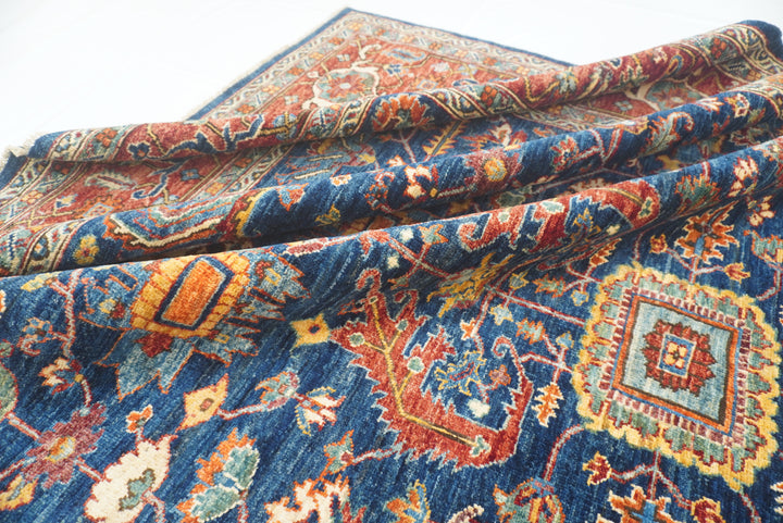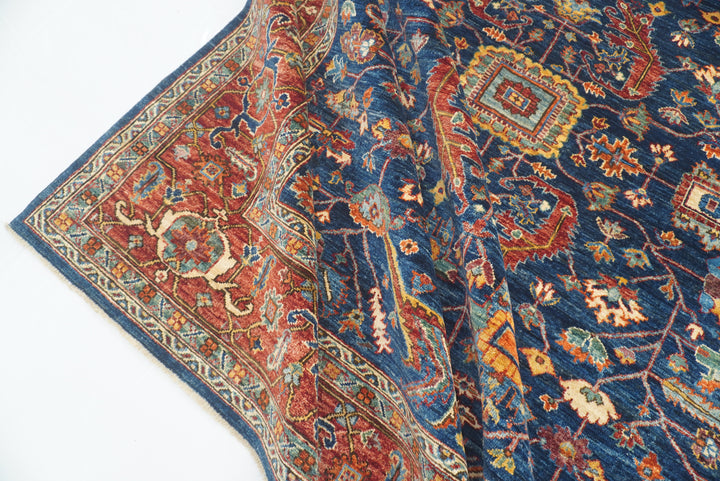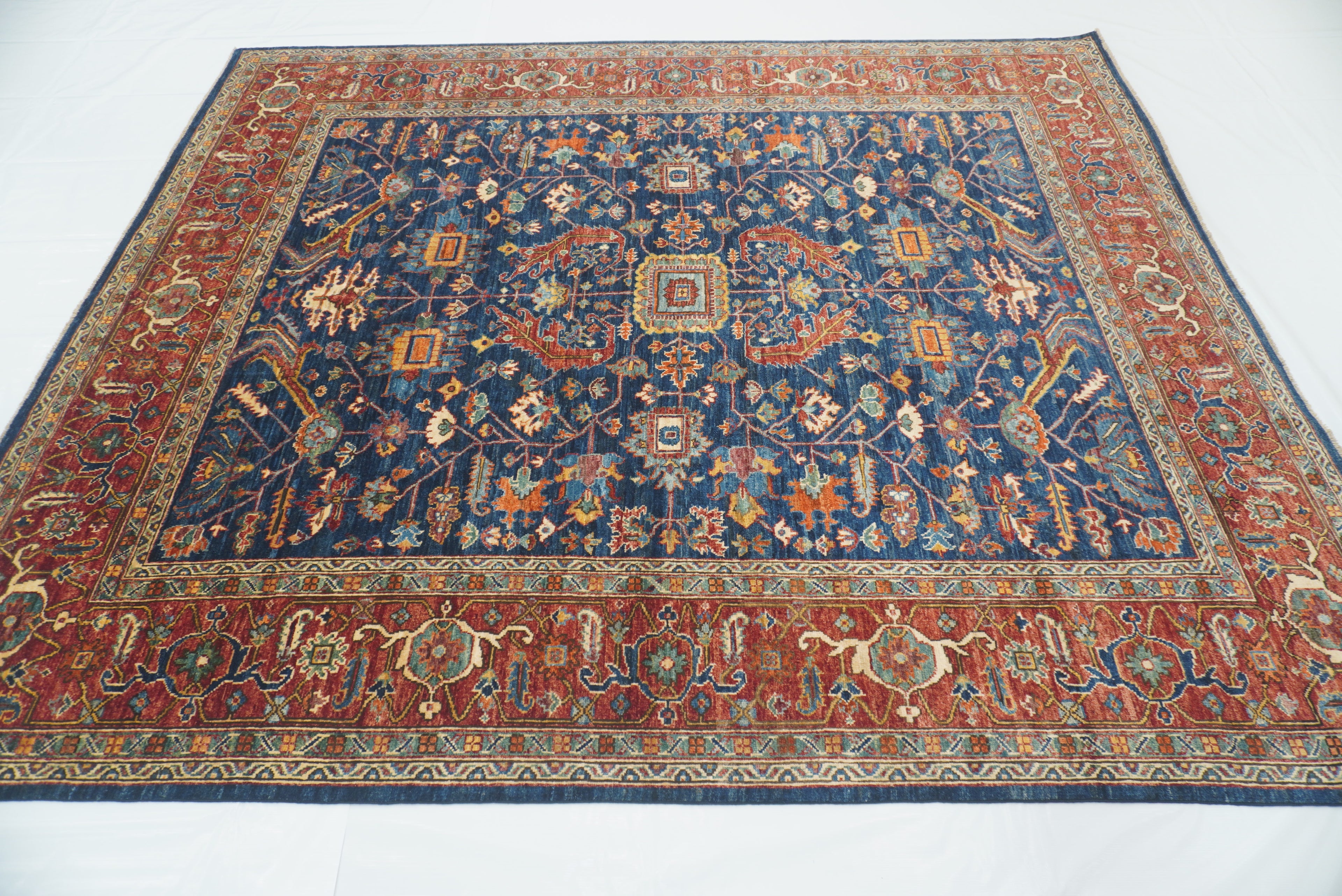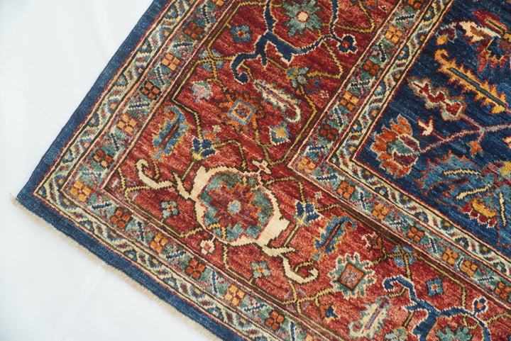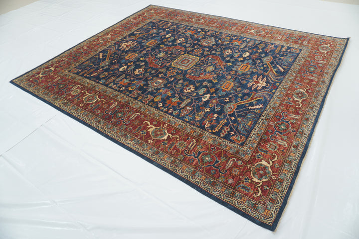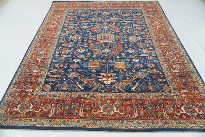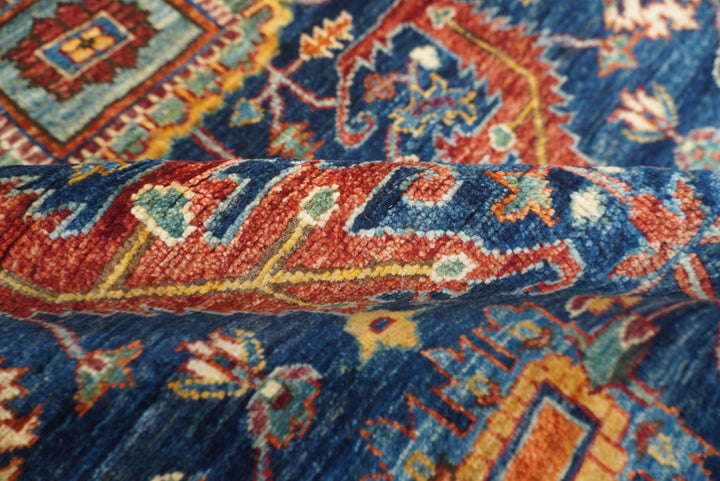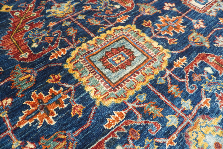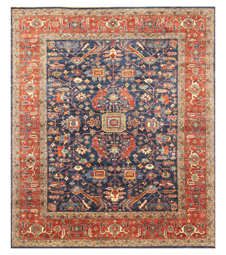8x10 Blue Heriz Afghan Hand-Knotted Oriental Rug