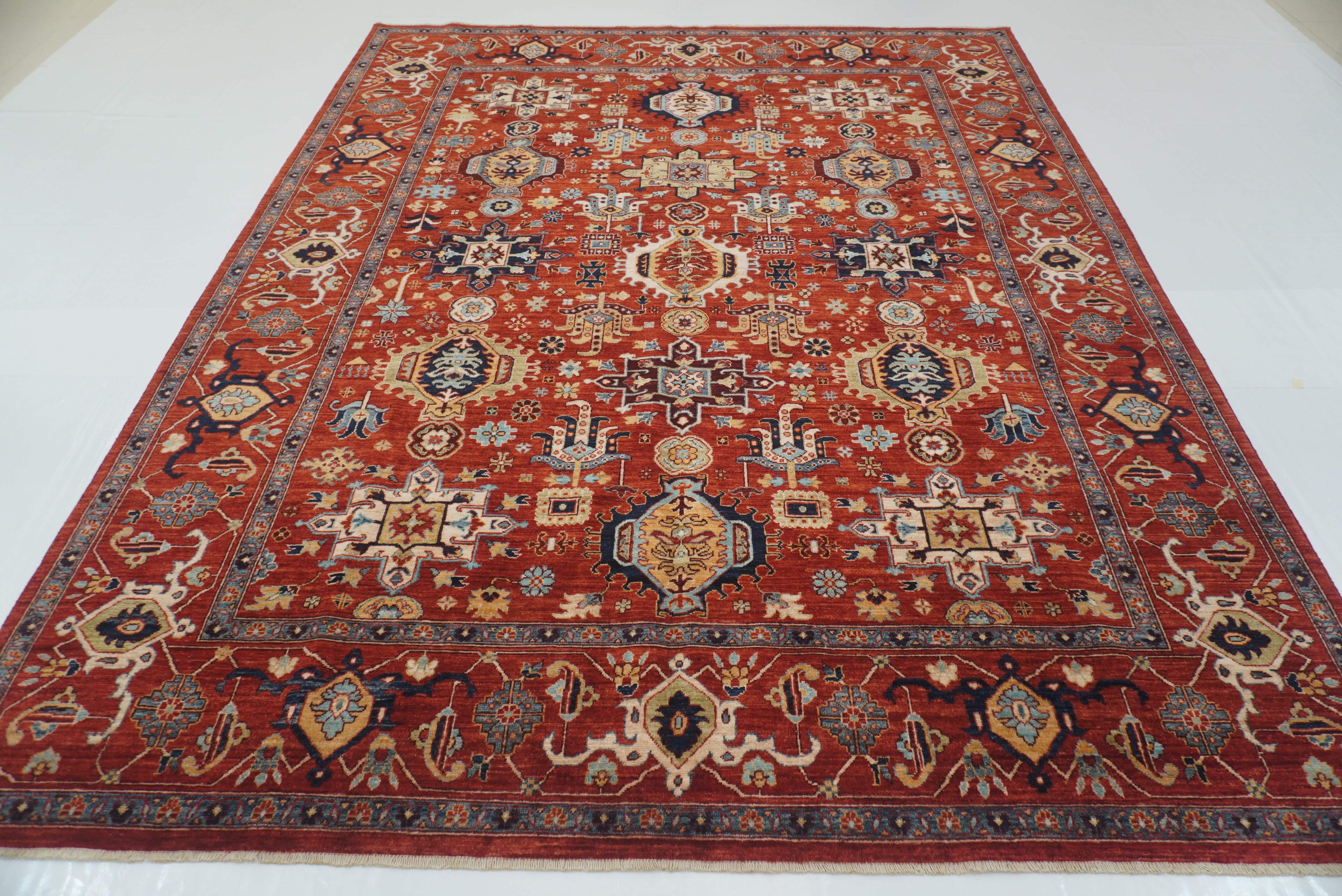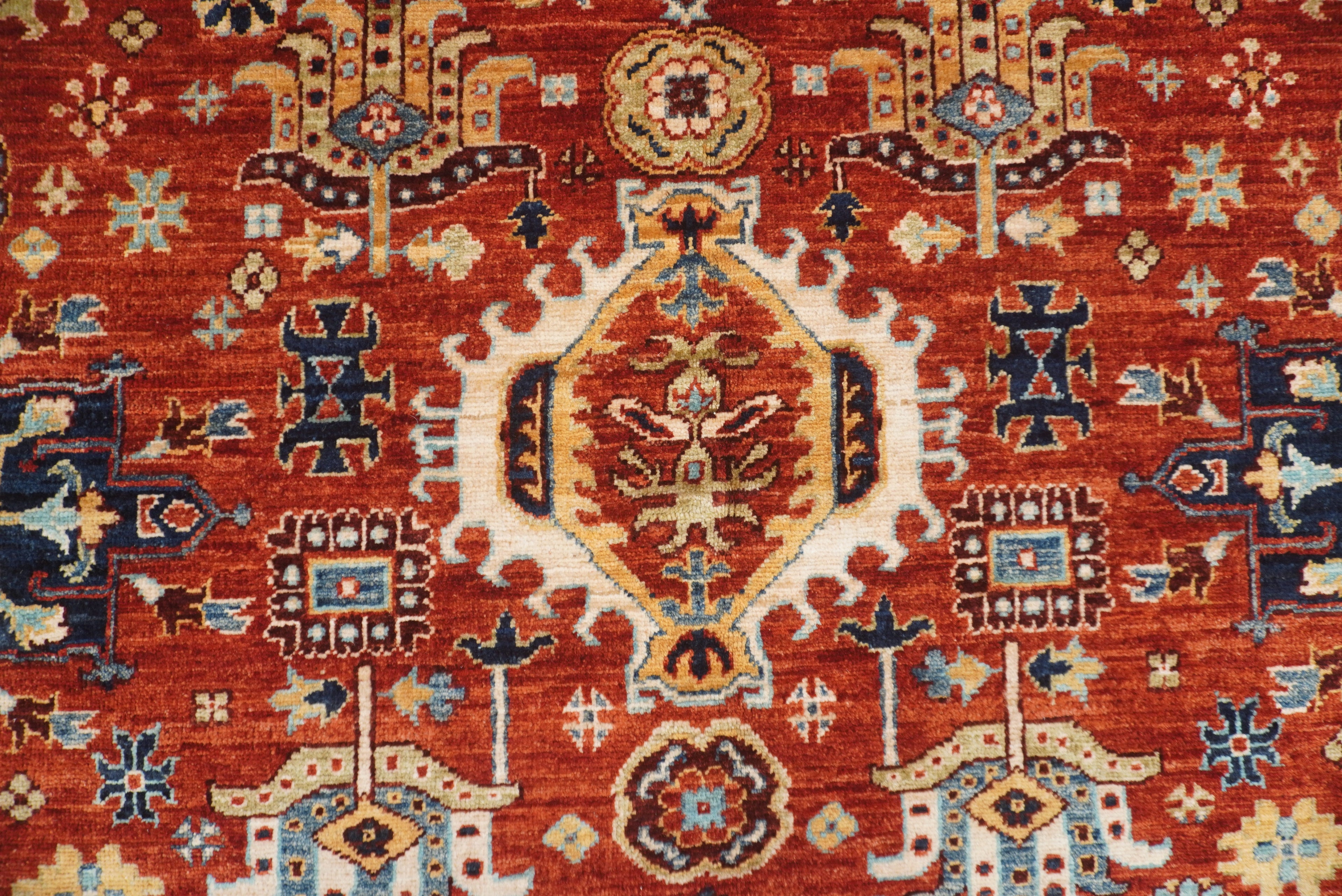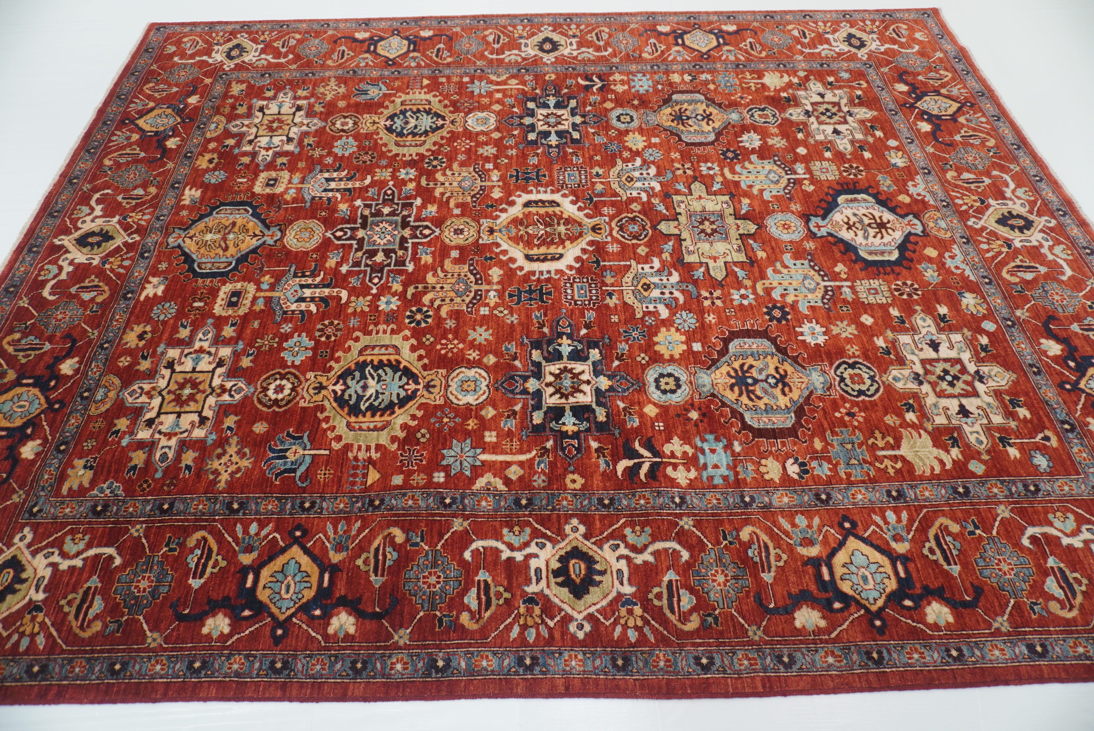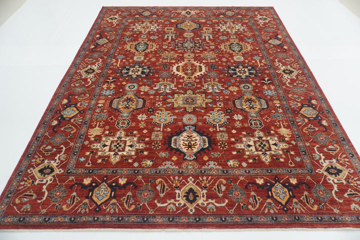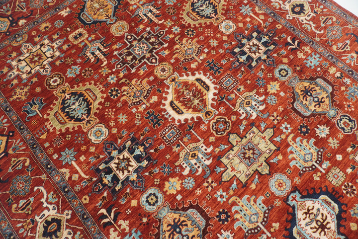 8x10 Deep Red Karaja Afghan Hand-Knotted Rug