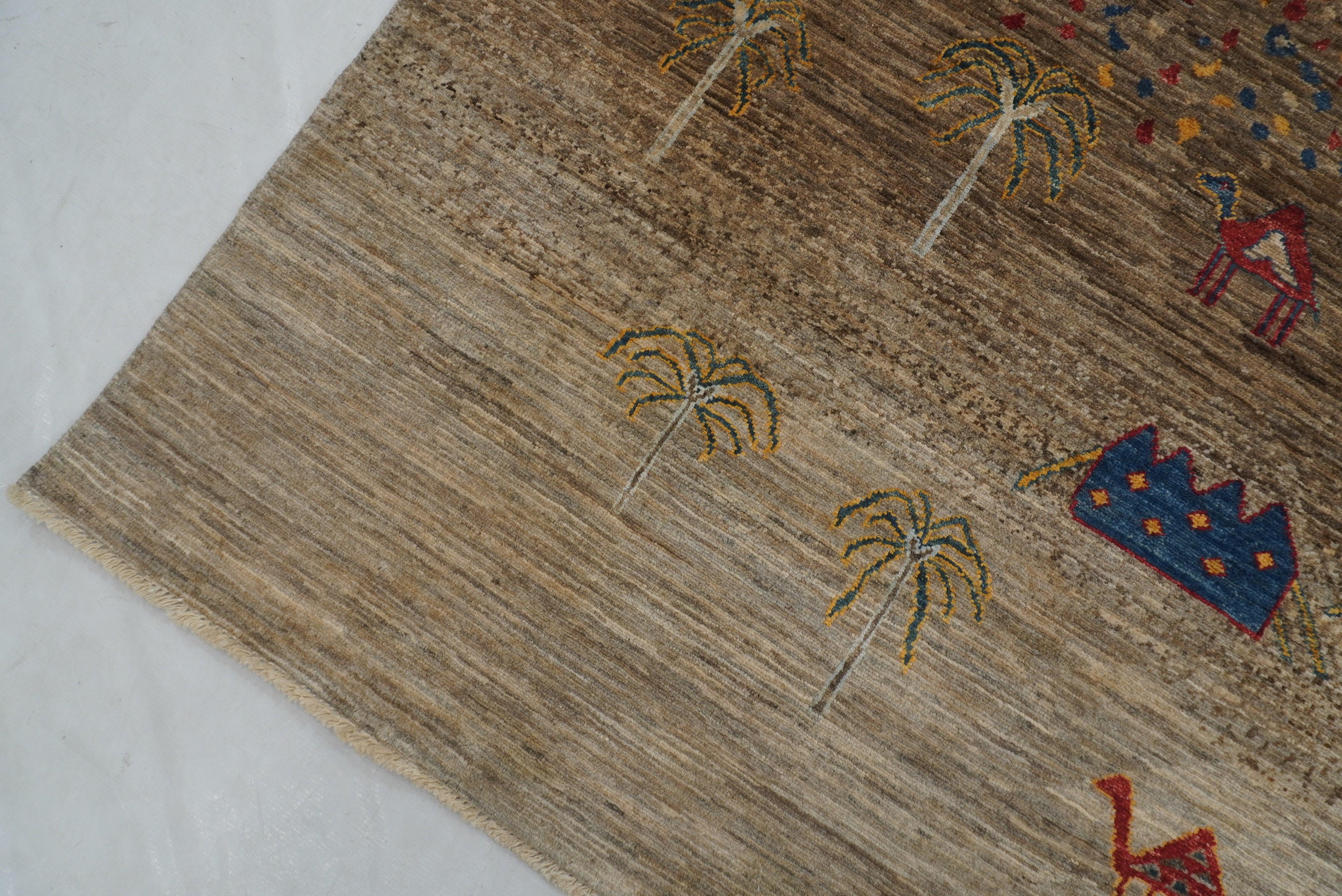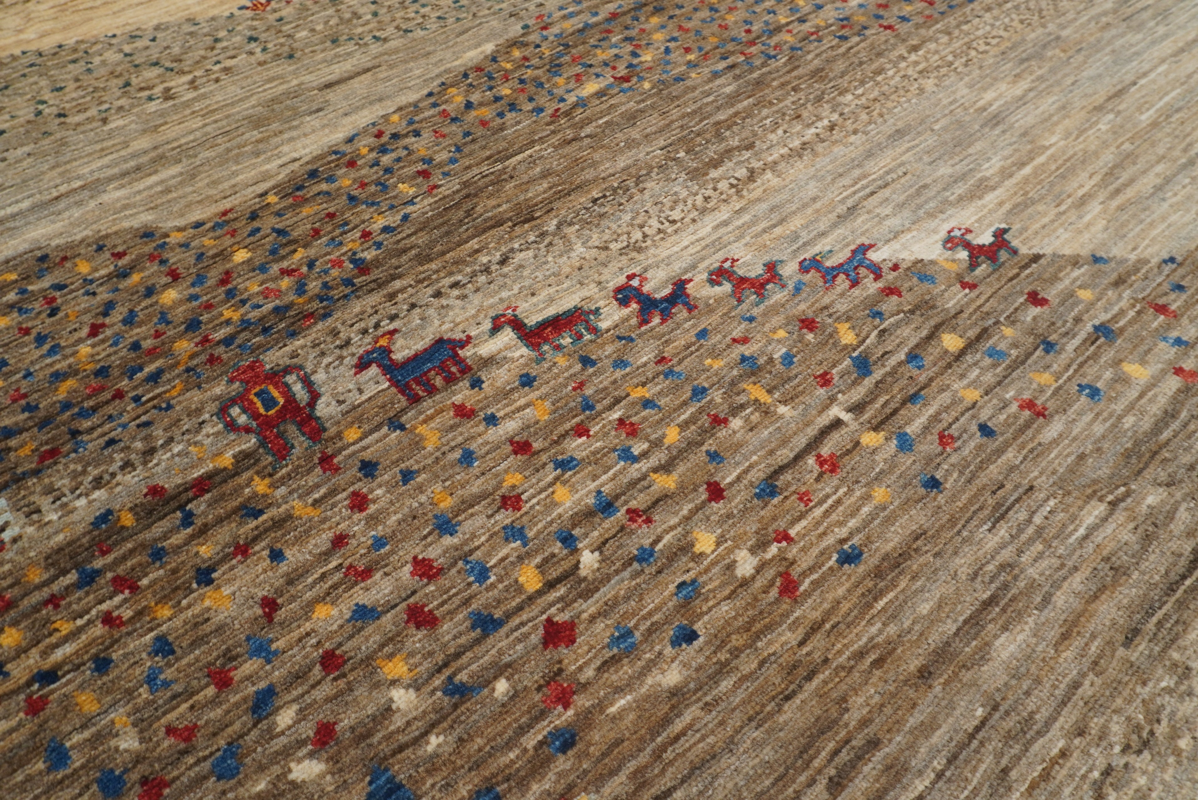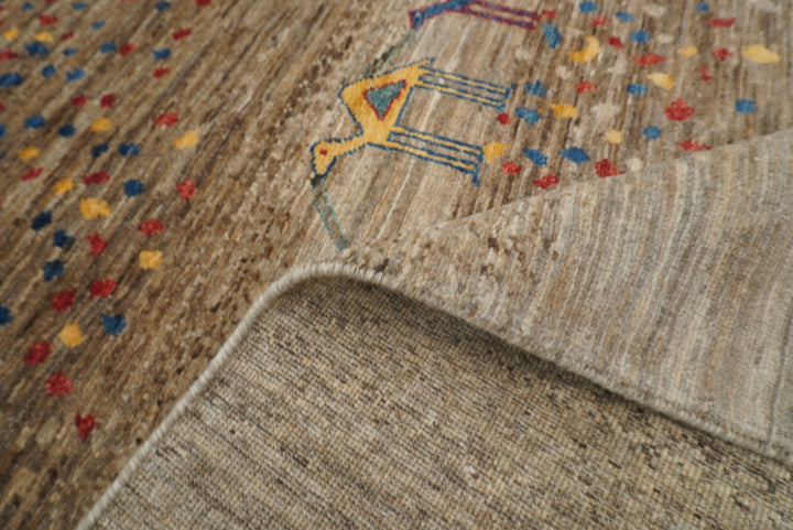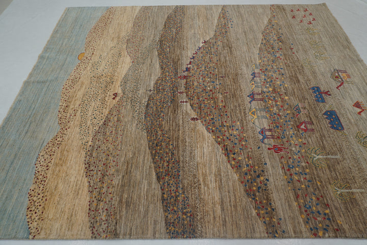 8x10 Gray Brown Landscape Gabbeh Afghan Hand knotted Rug