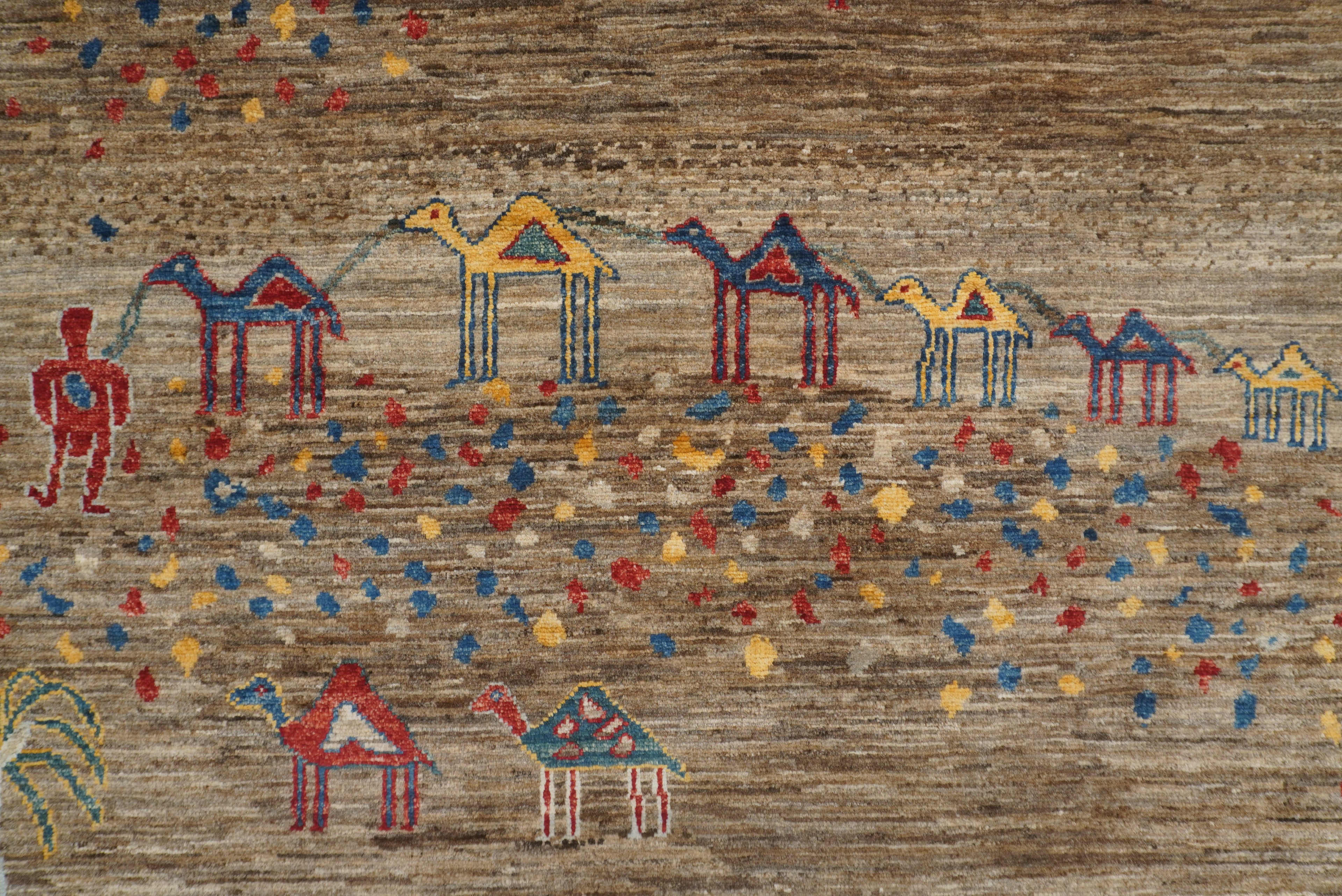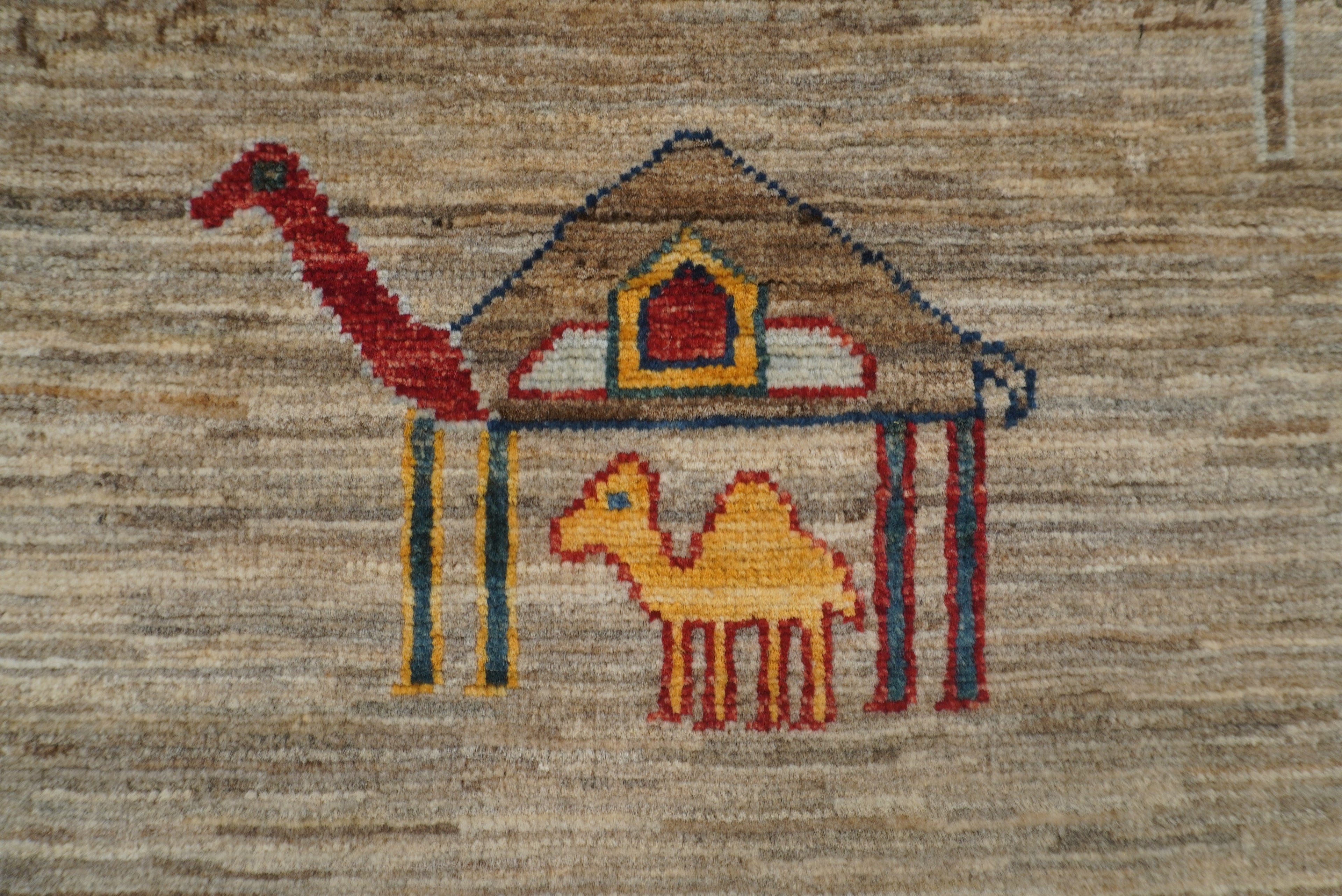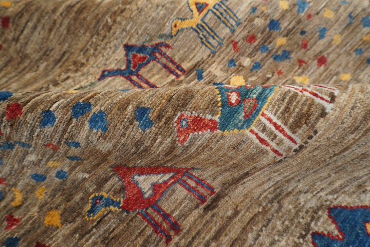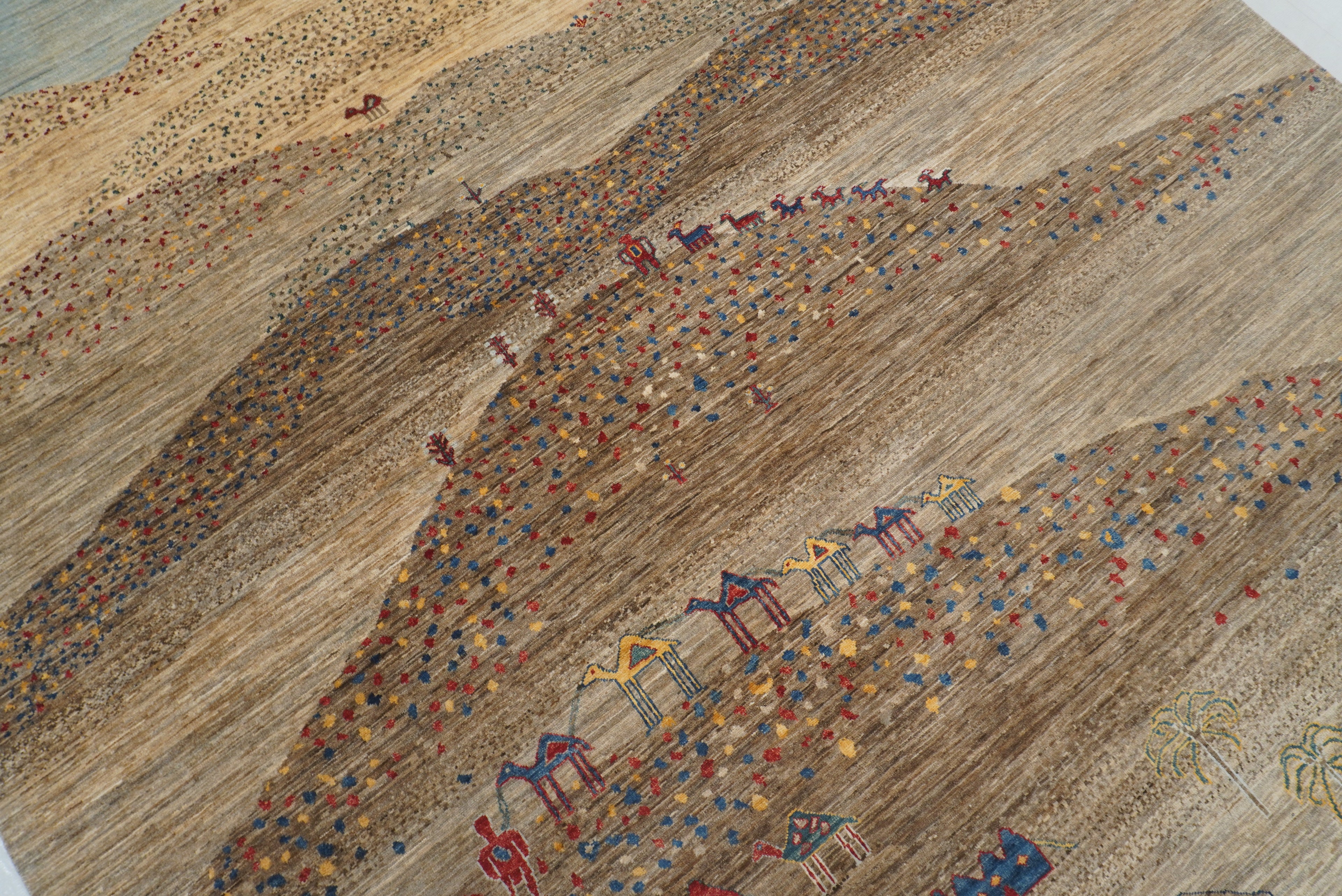 8x10 Gray Brown Landscape Gabbeh Afghan Hand knotted Rug