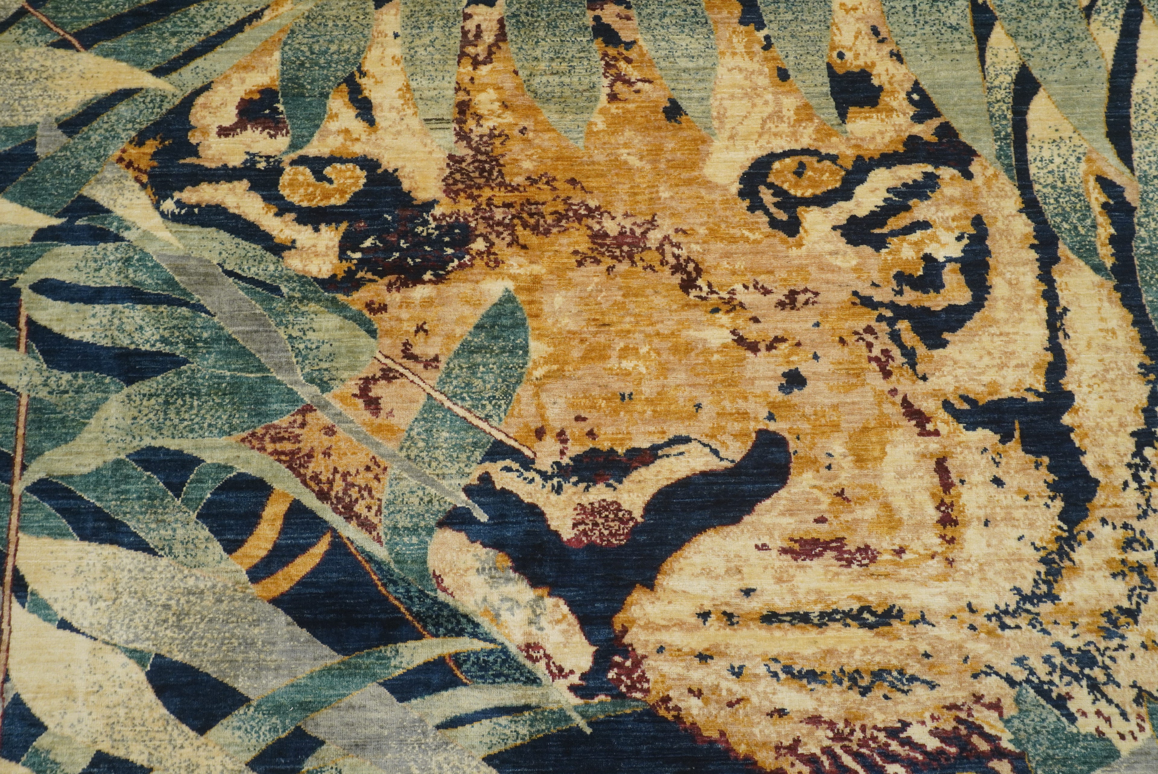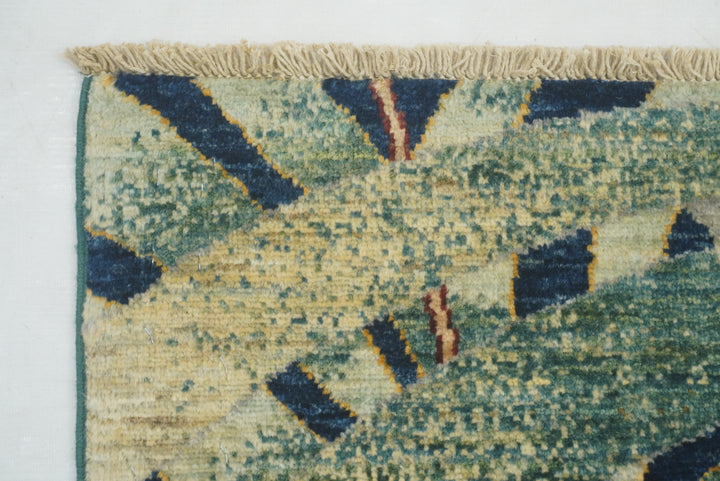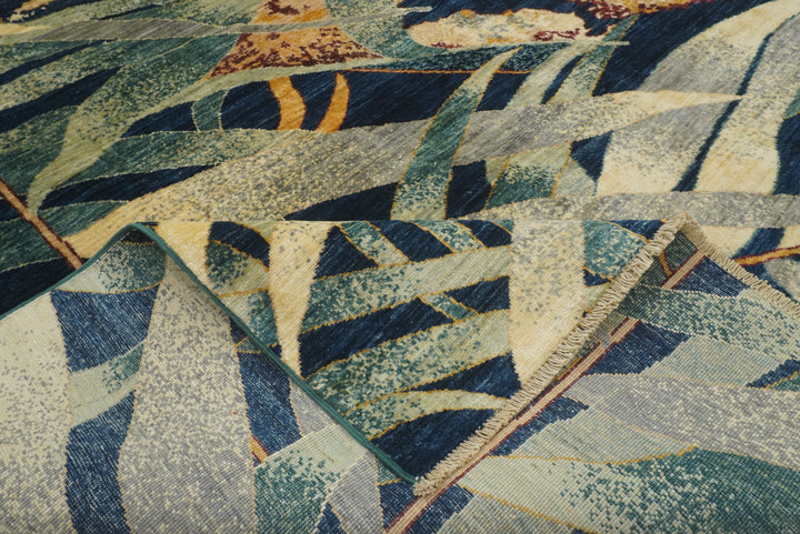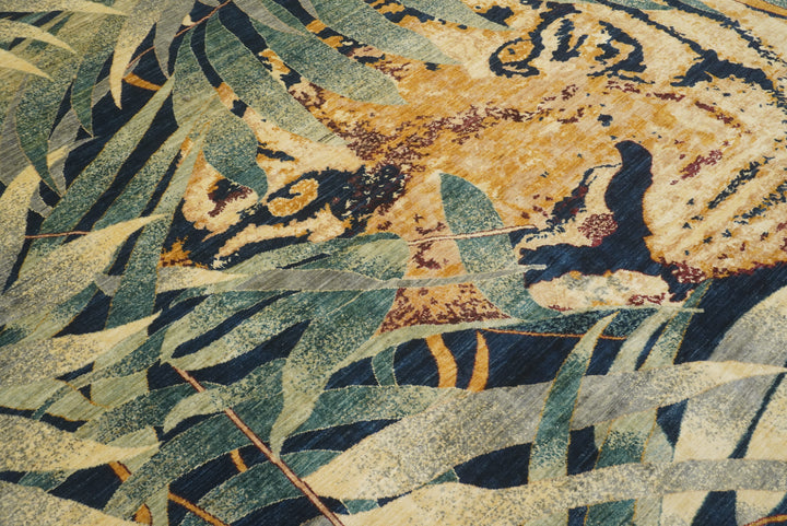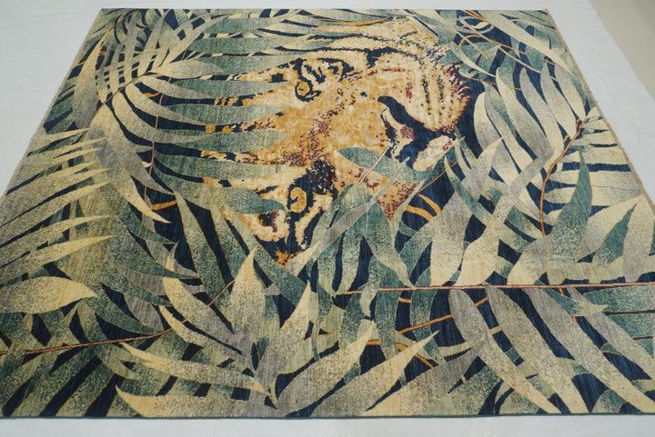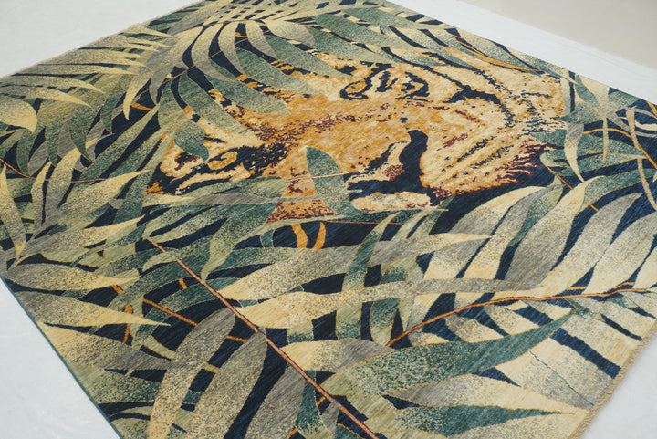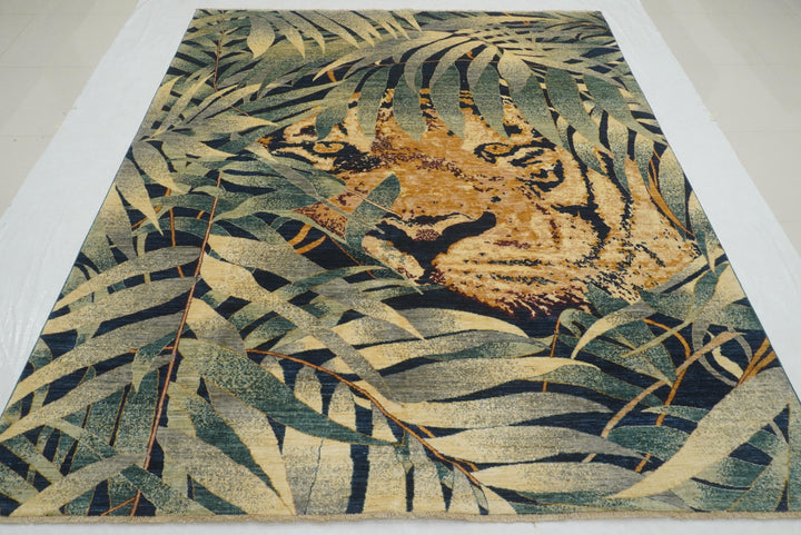 8x10 Green Tiger Afghan Hand knotted Pictorial Rug