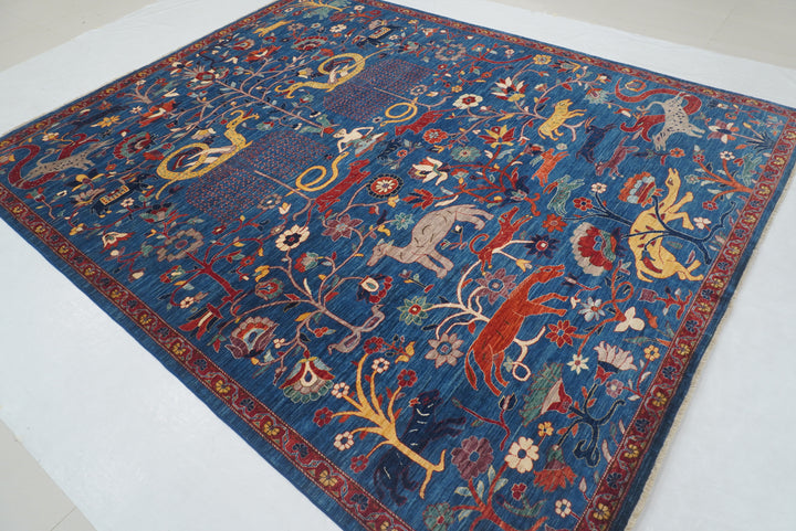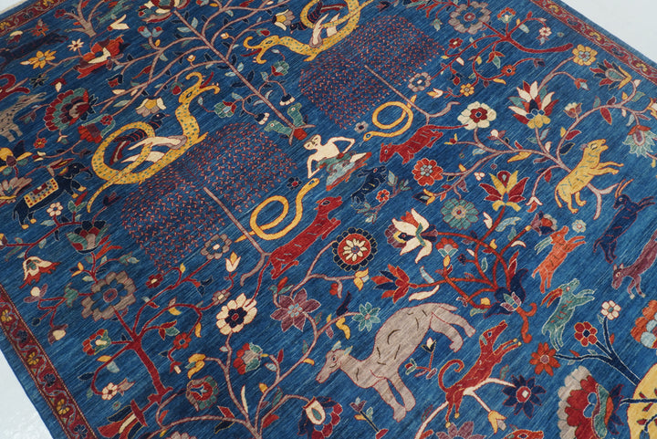 8x10 Navy Blue Nomadic Gabbeh Afghan Hand Knotted Rug