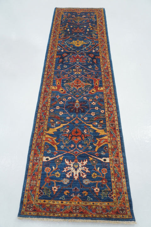 9 ft Dark Blue Bidjar Afghan Hand knotted Oriental Runner Rug