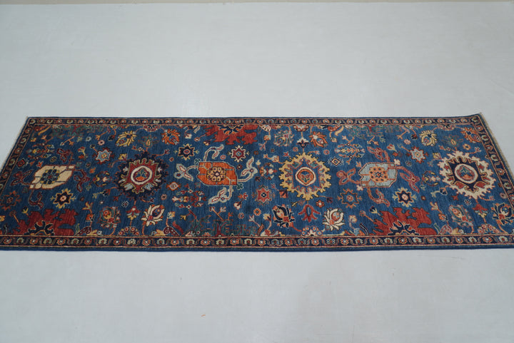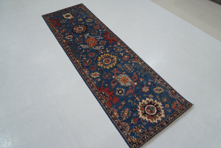 9 ft Navy Blue Bidjar Afghan Hand knotted Runner Rug
