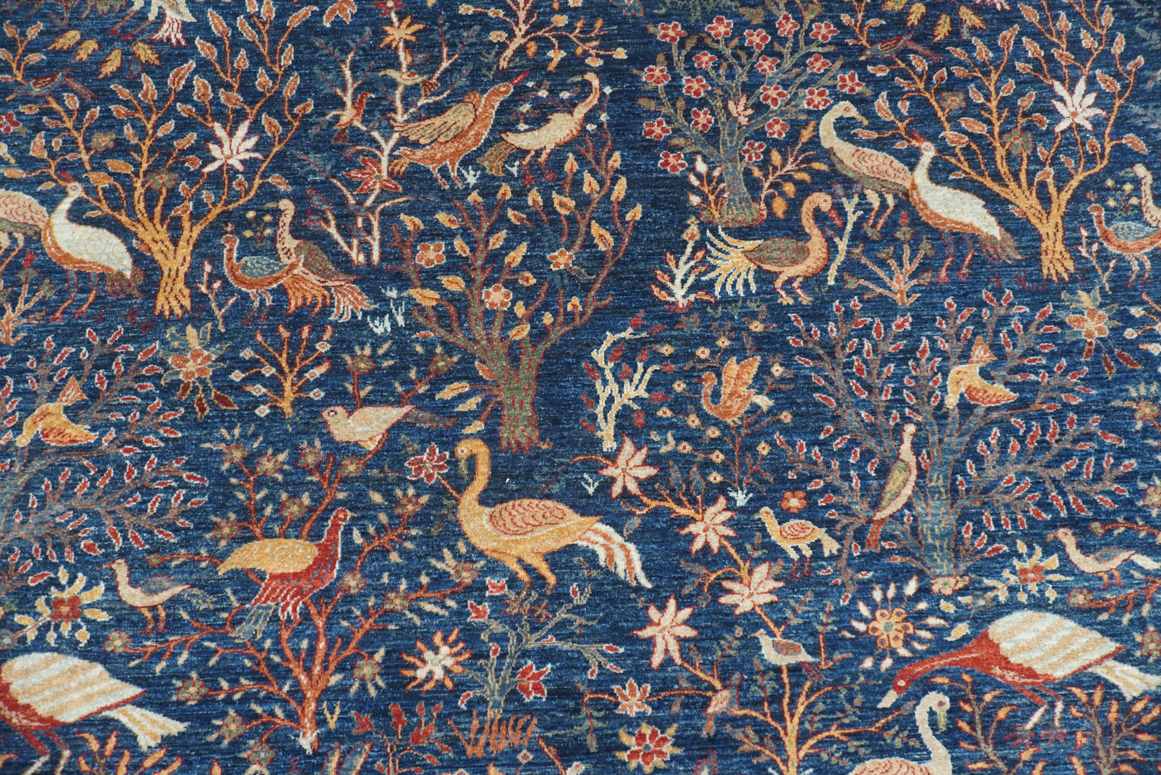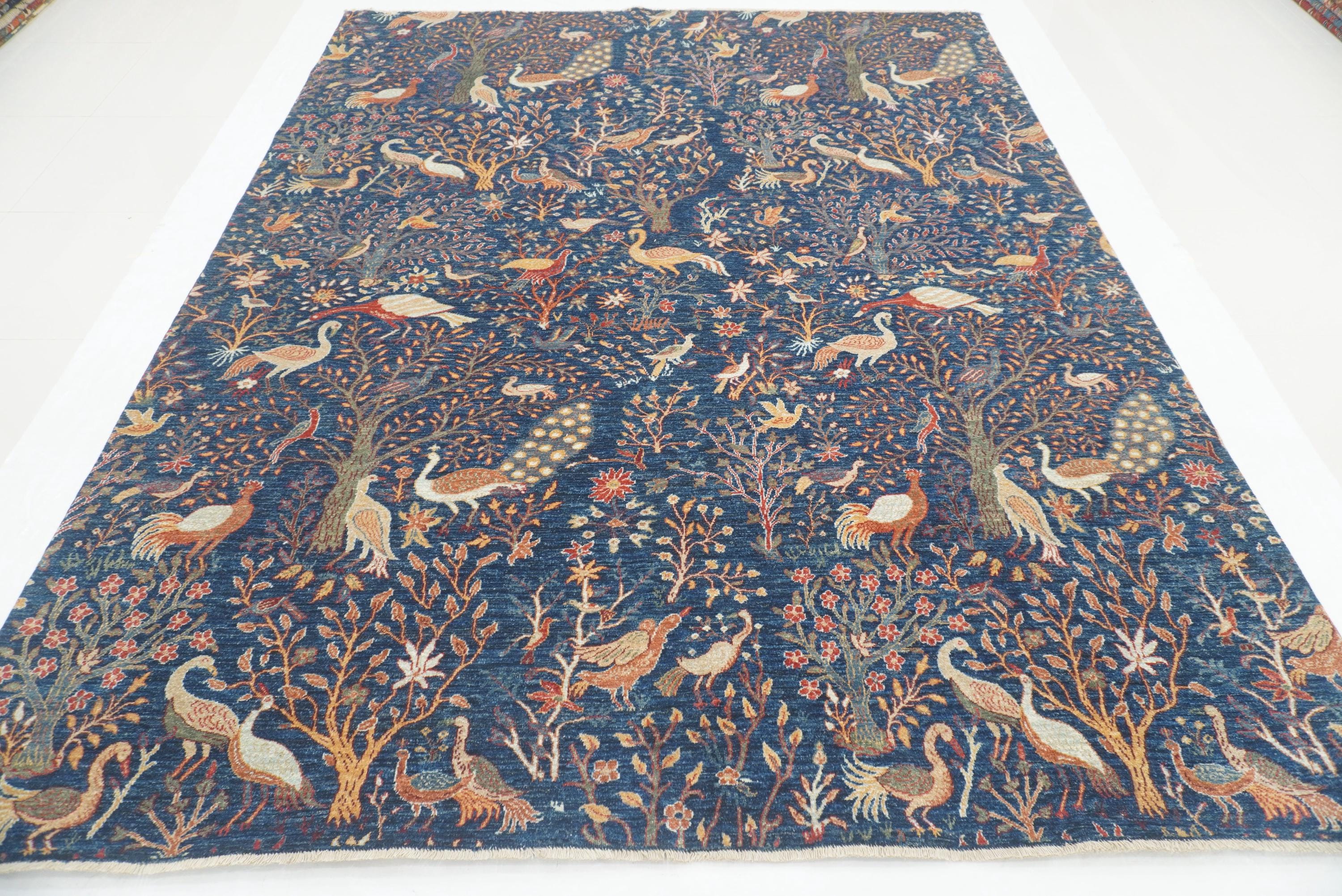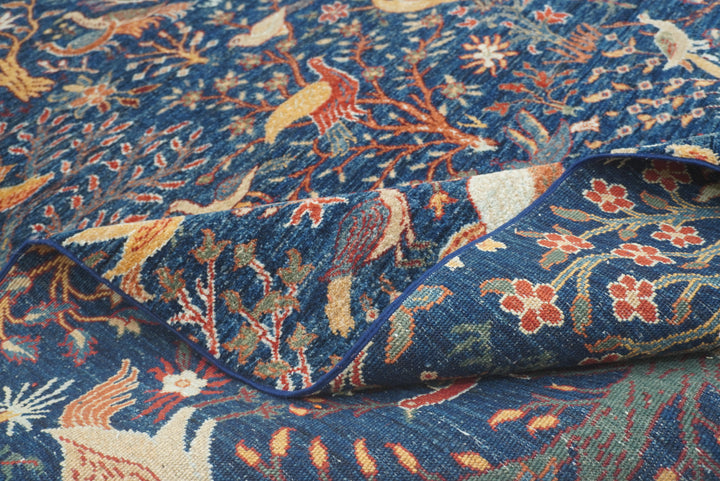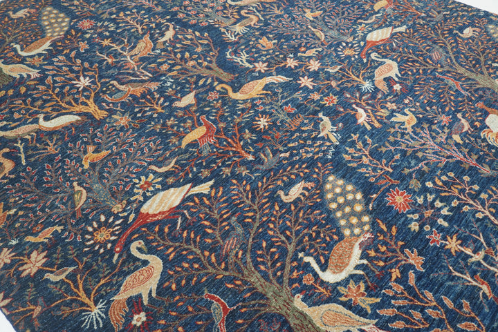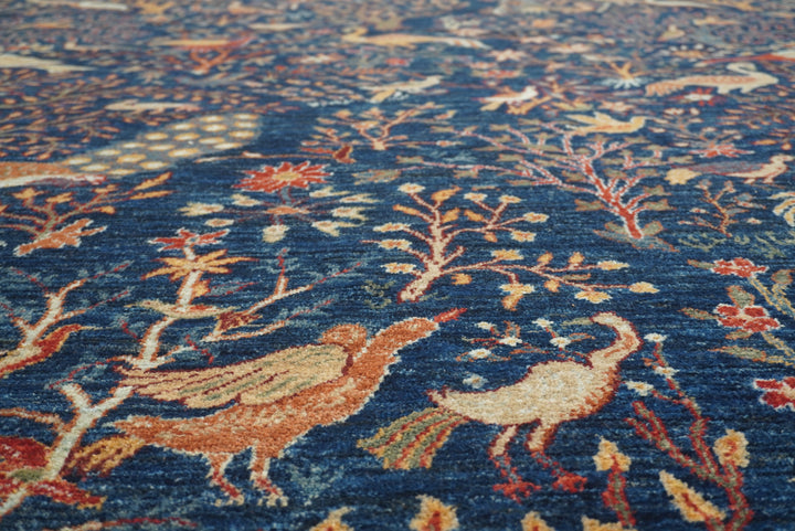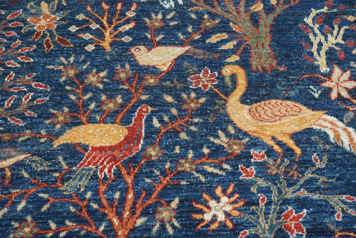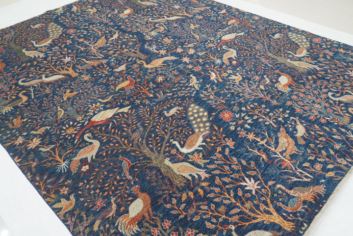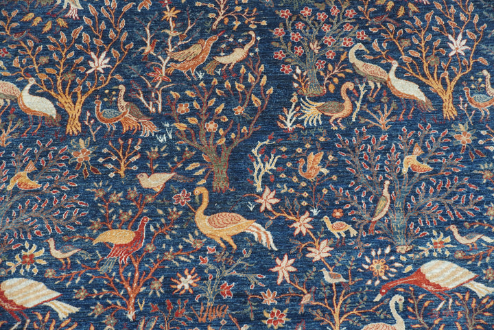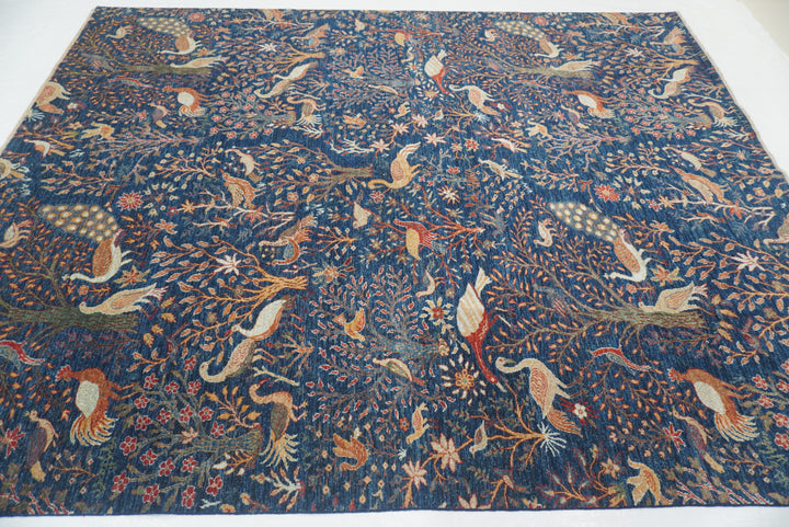 9x11 Navy Blue Tribal Bird Afghan Gabbeh Hand Knotted Rug