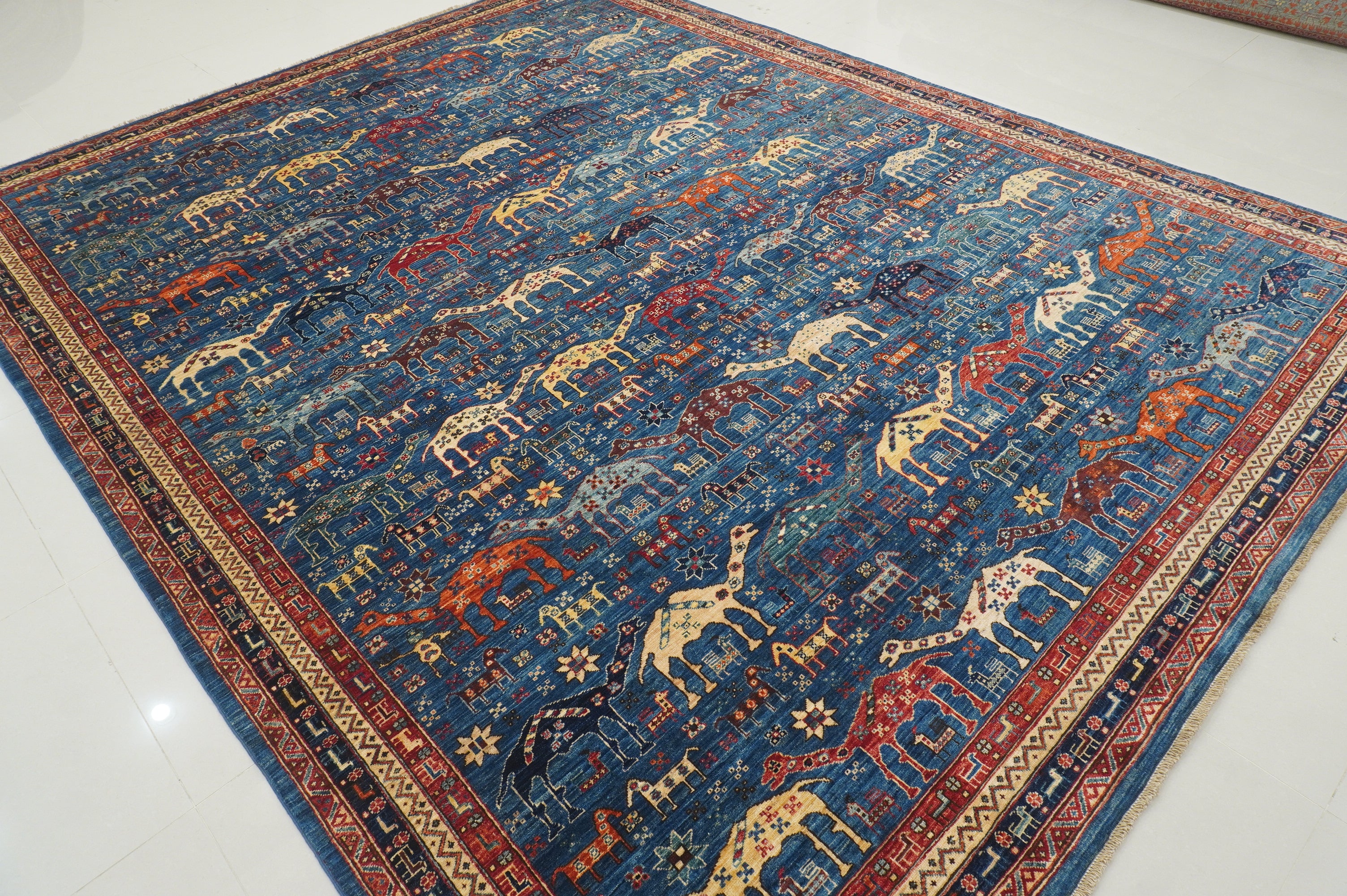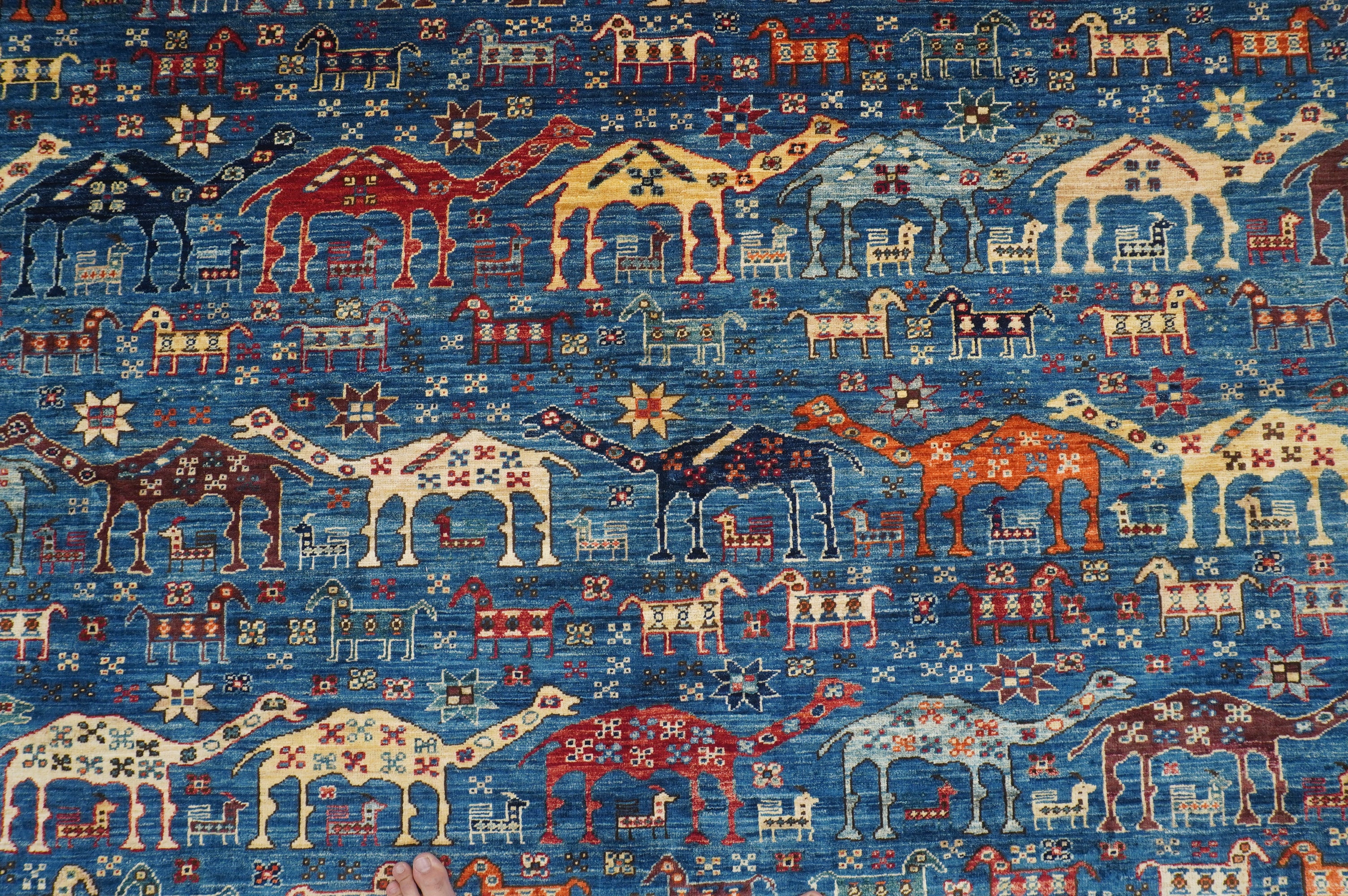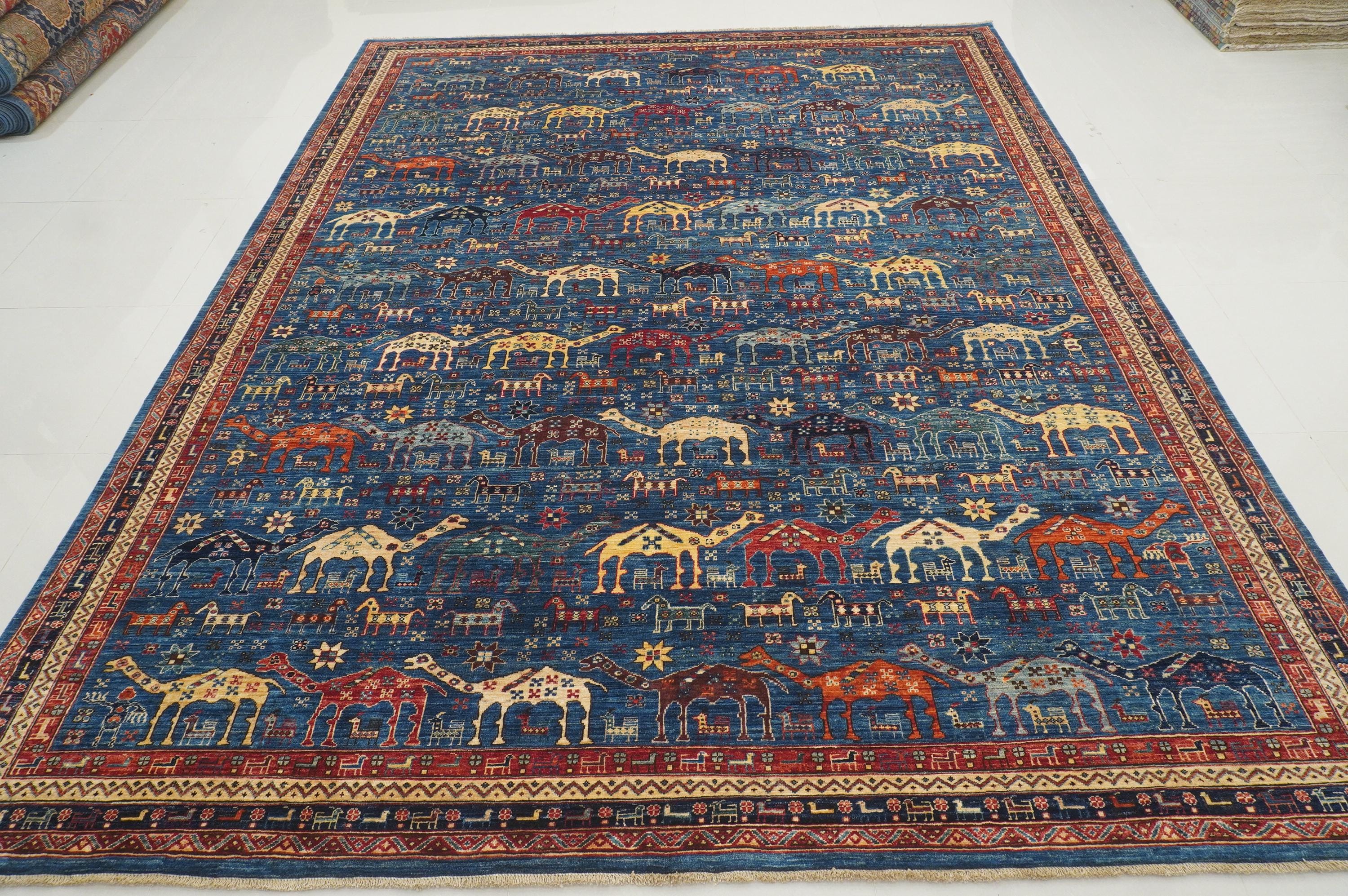 9x12 Blue Tribal Gabbeh Nomadic Afghan Animal Rug