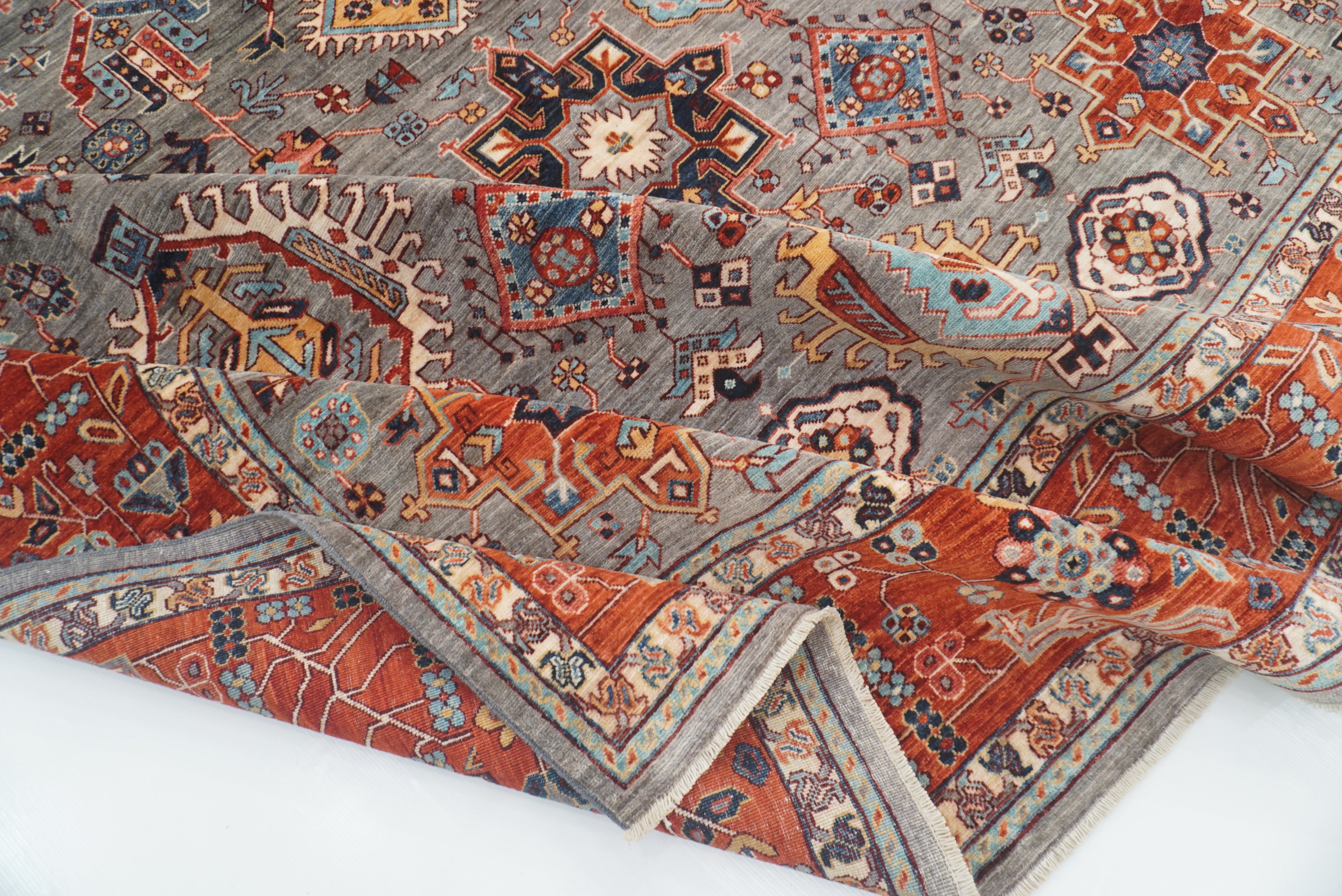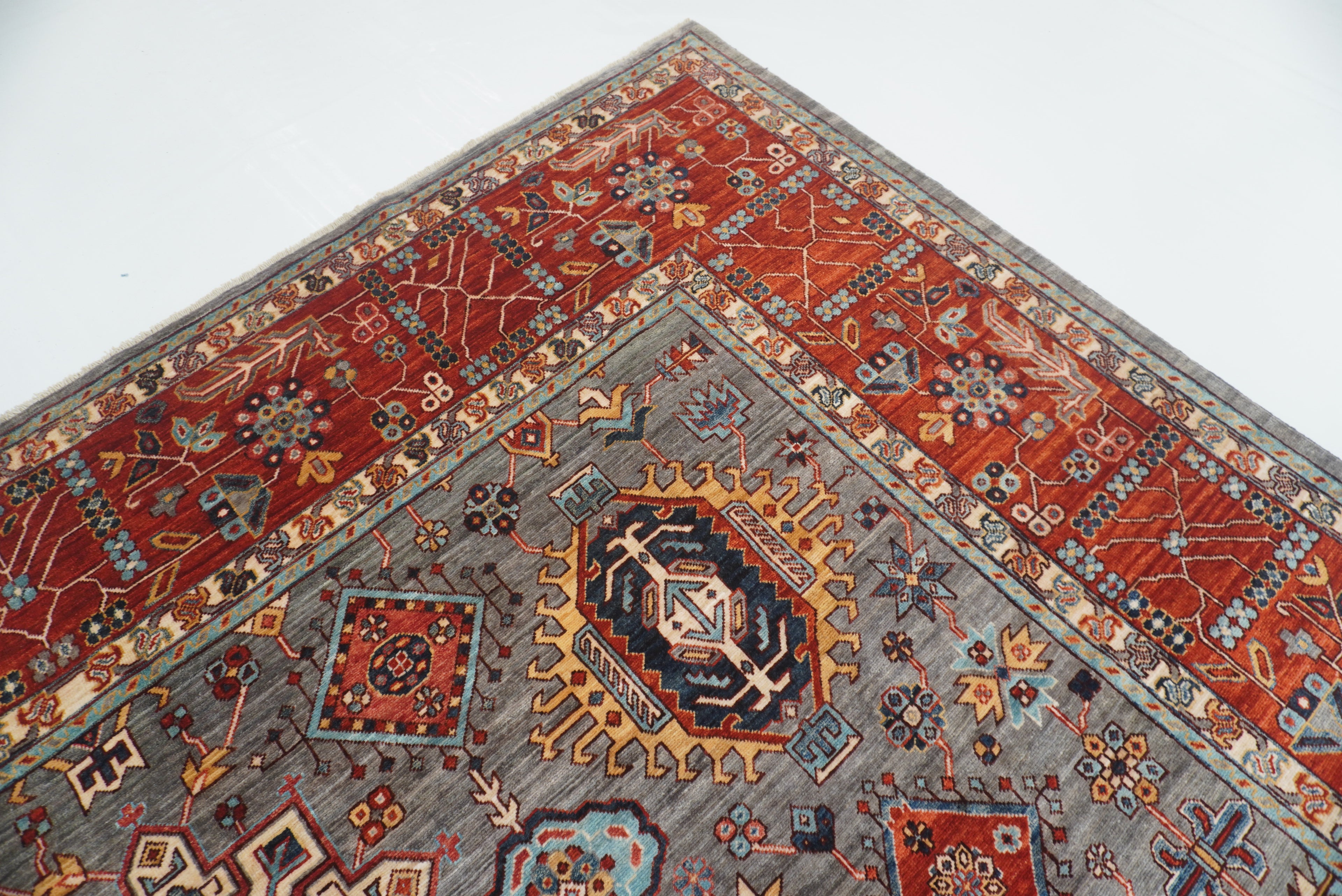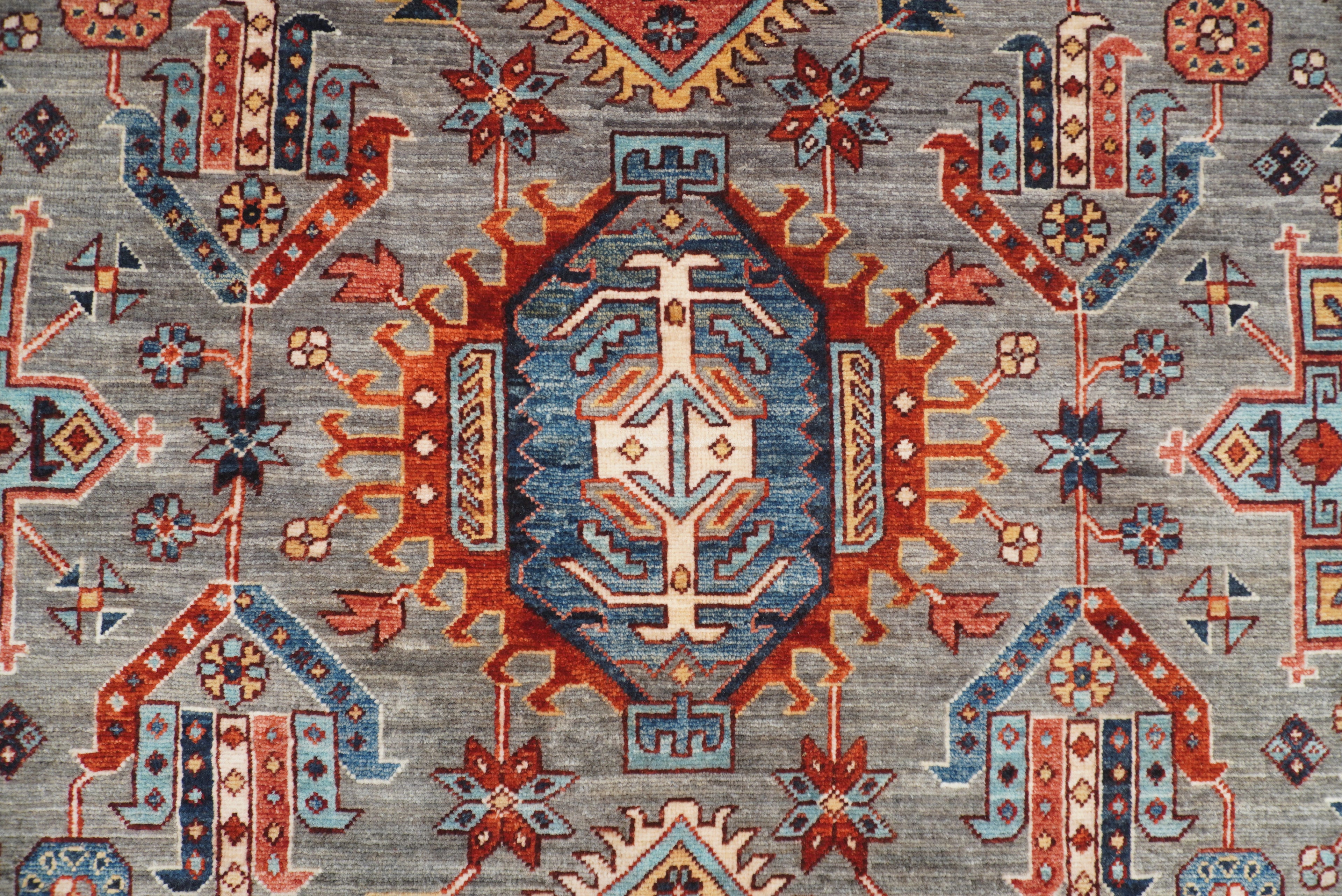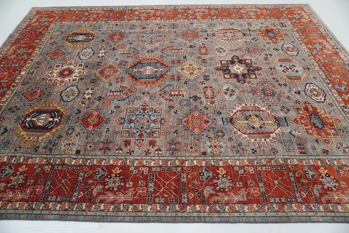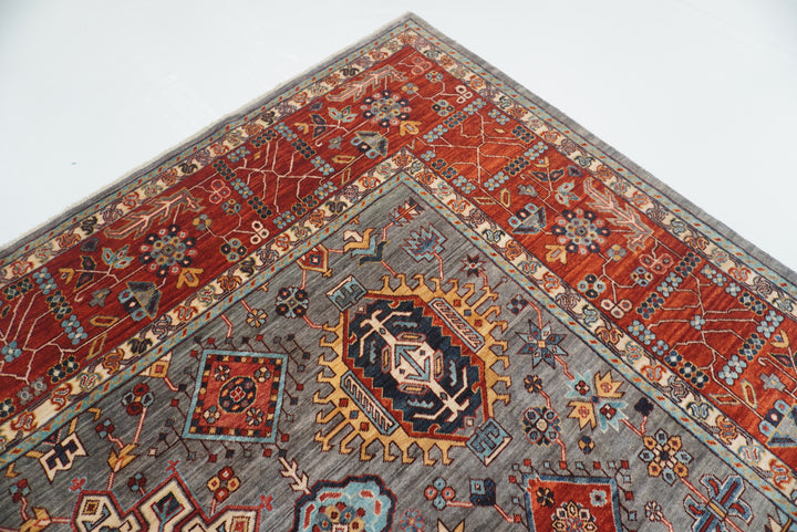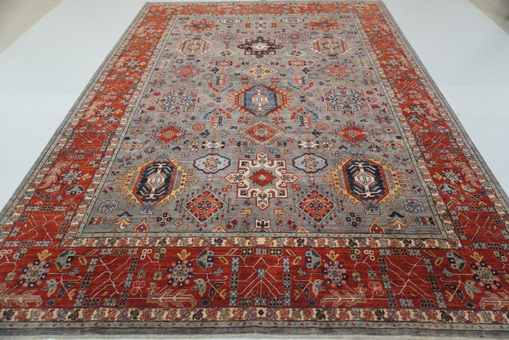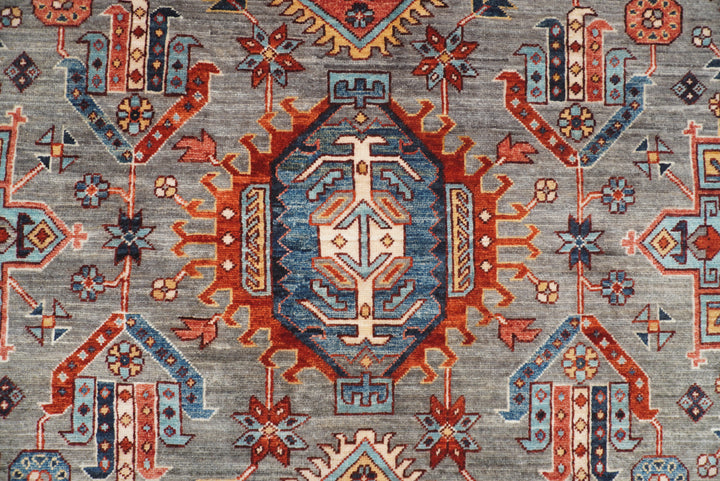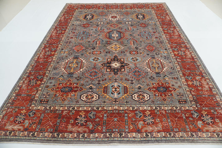 9x12 Gray Karaja Afghan Hand-Knotted Rug