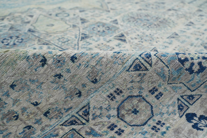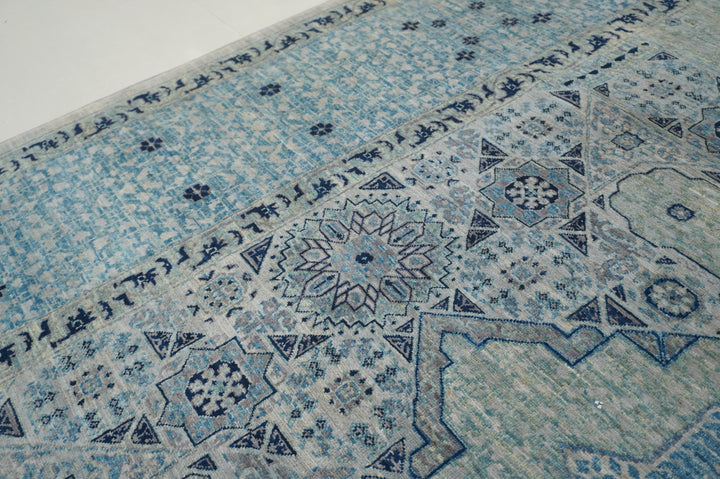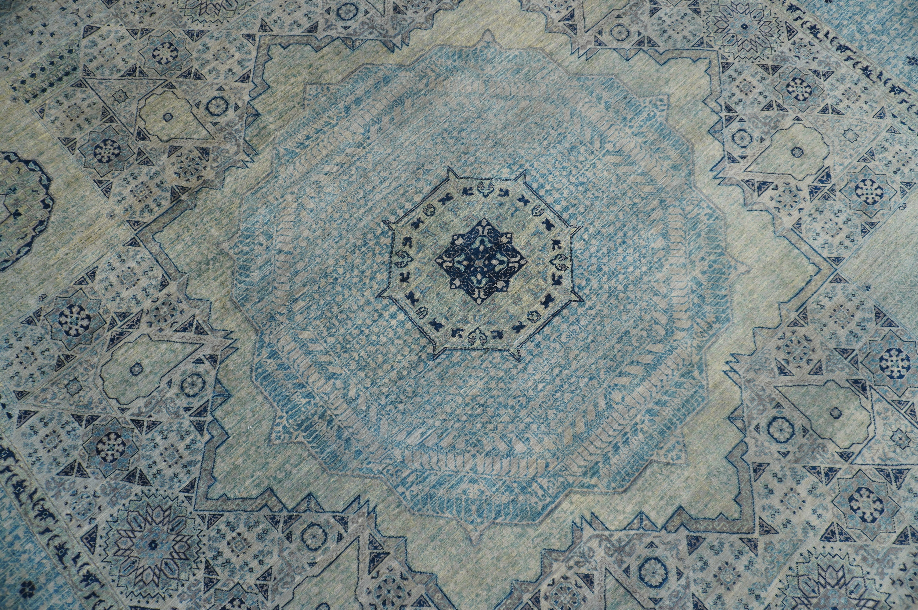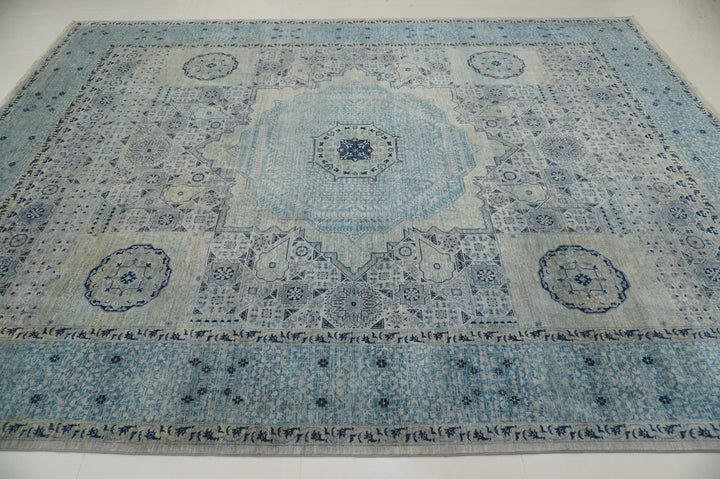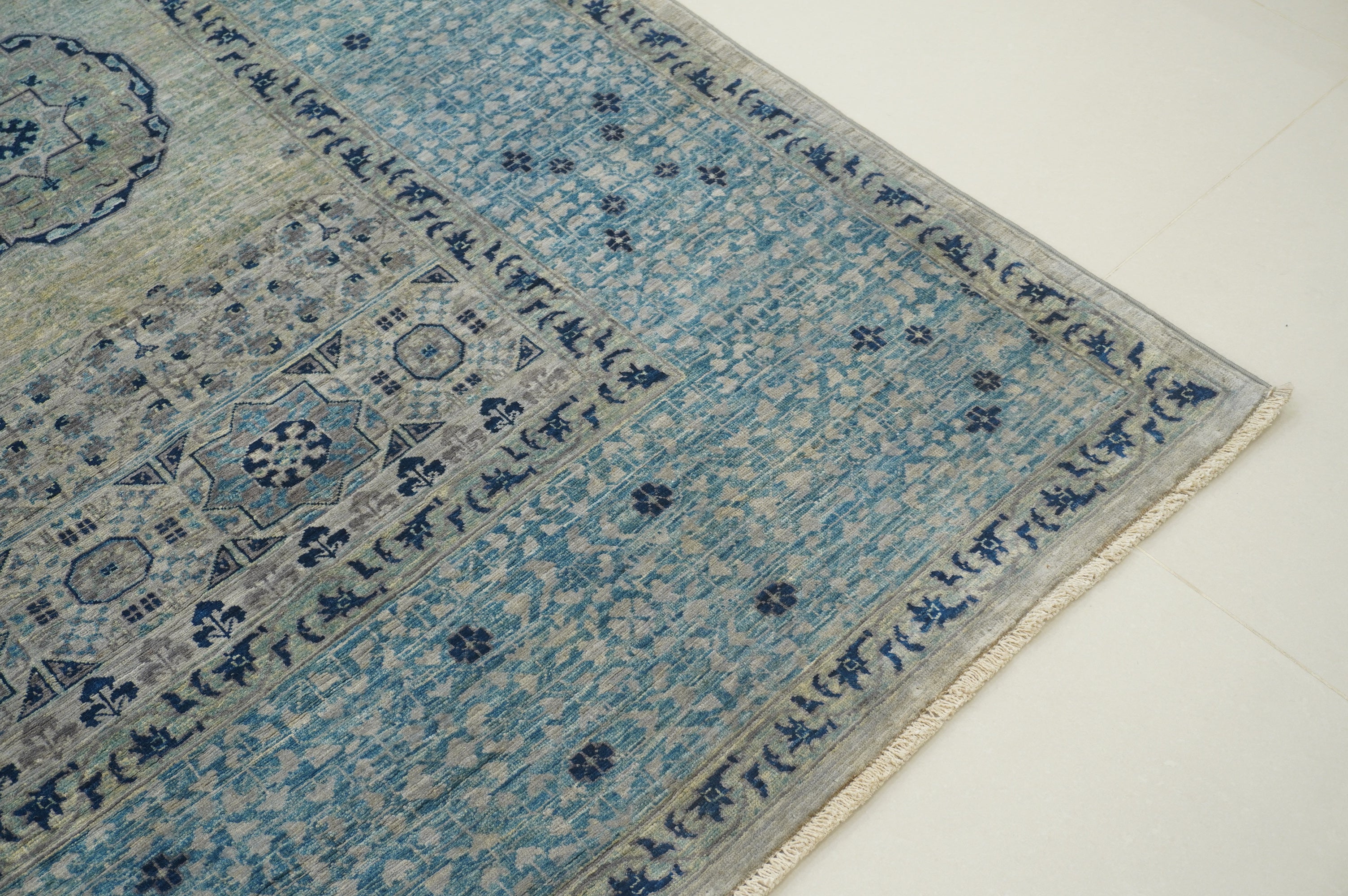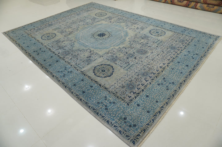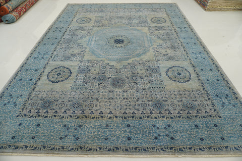 9x12 Muted Gray Blue Mamluk Turkish Hand Knotted Medallion Rug
