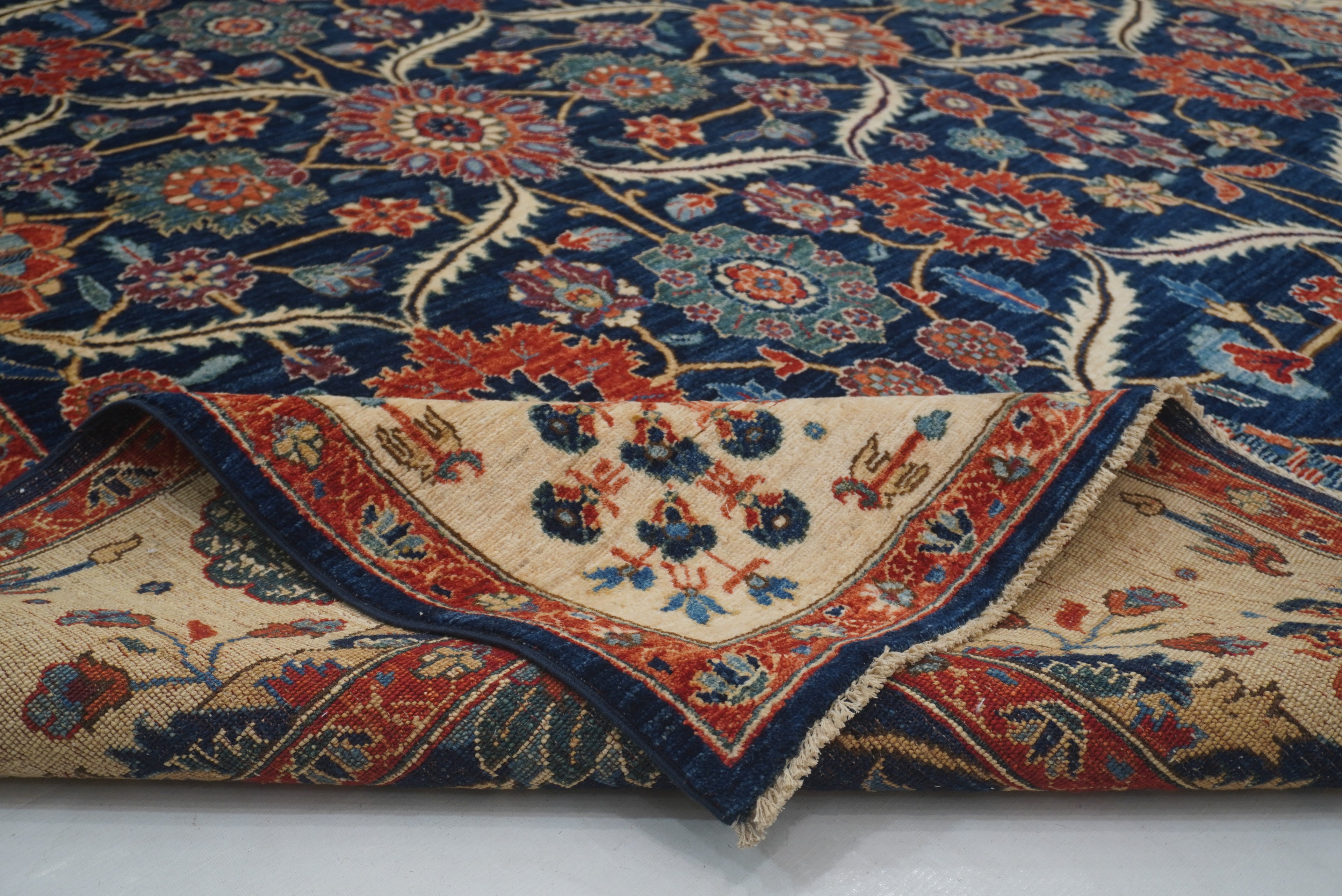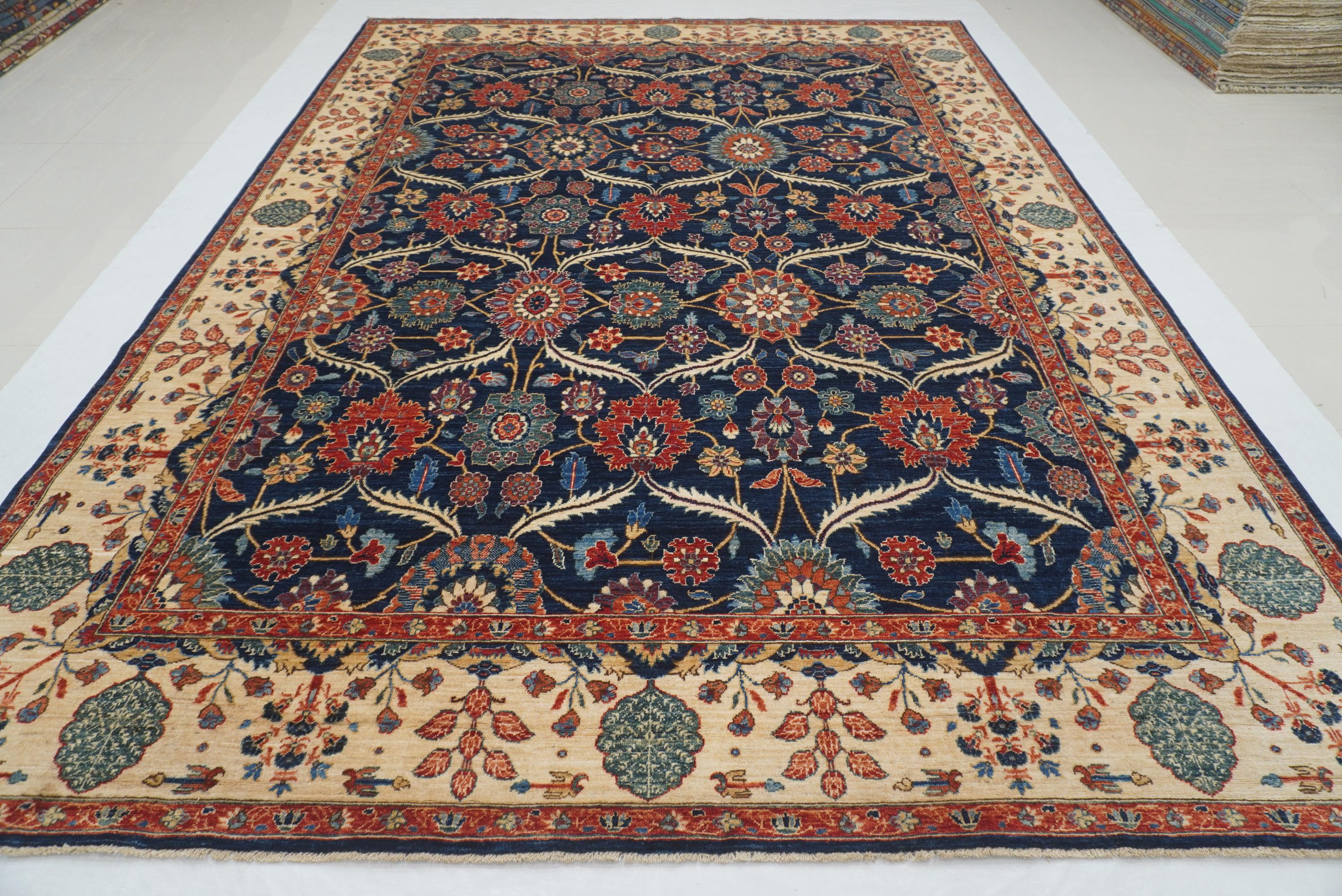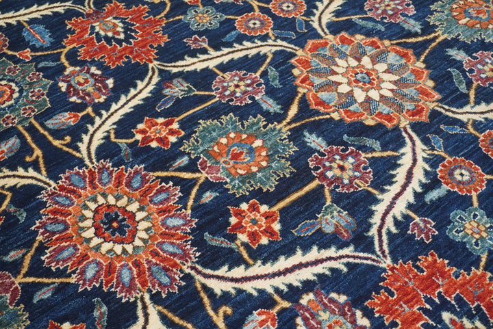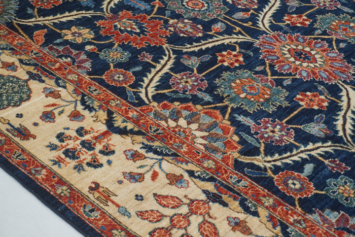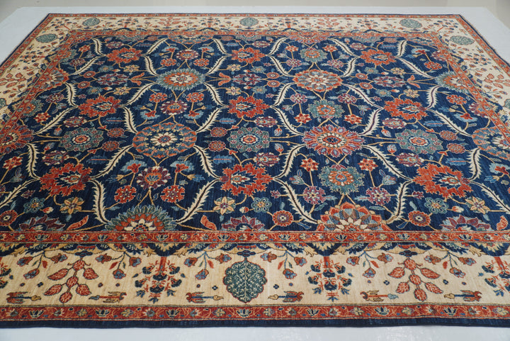 9x12 Navy Blue Afghan Hand Knotted Rug