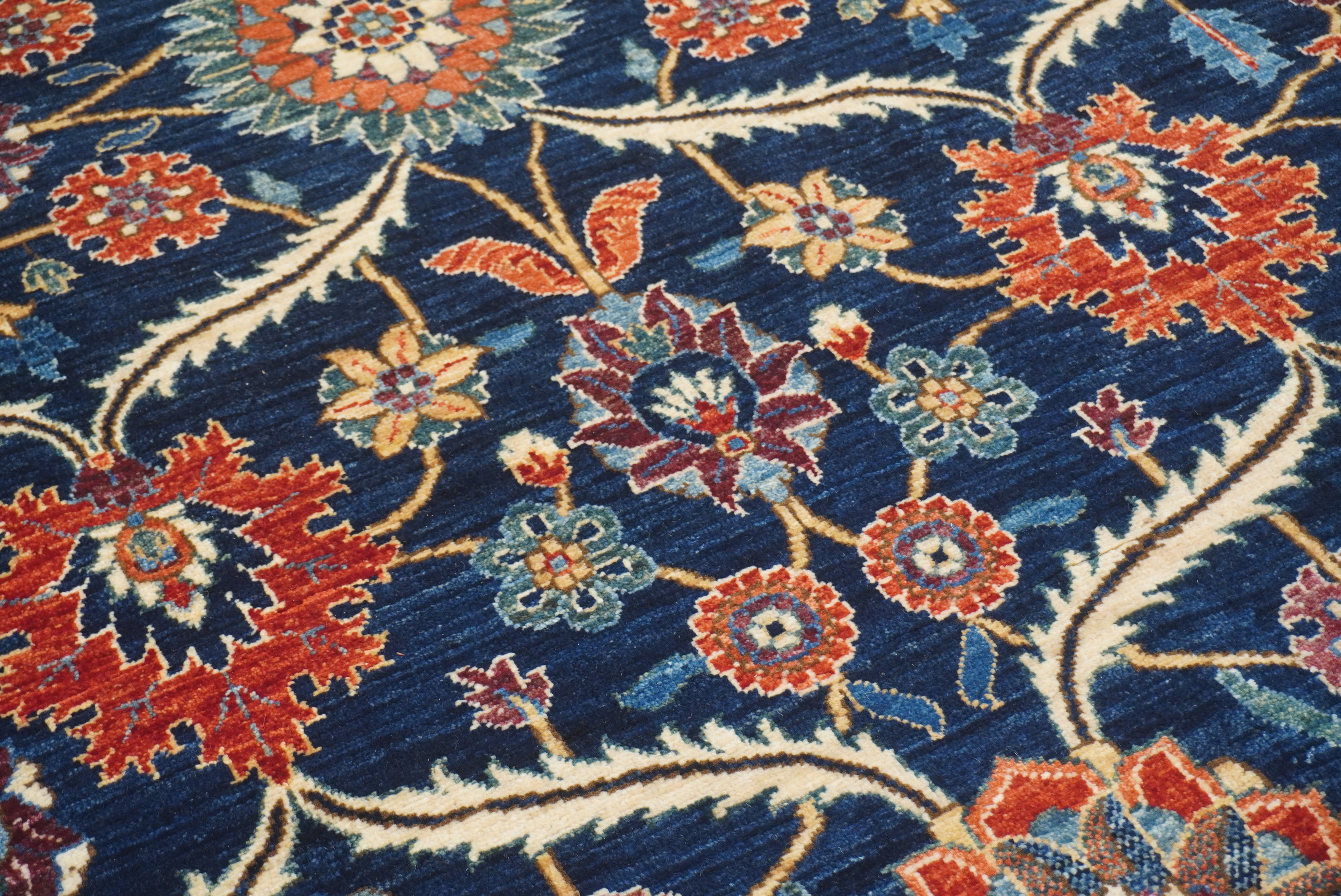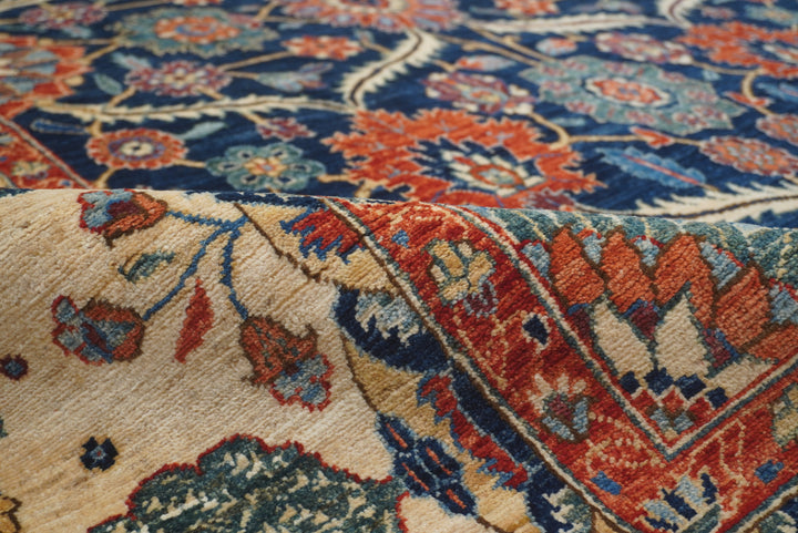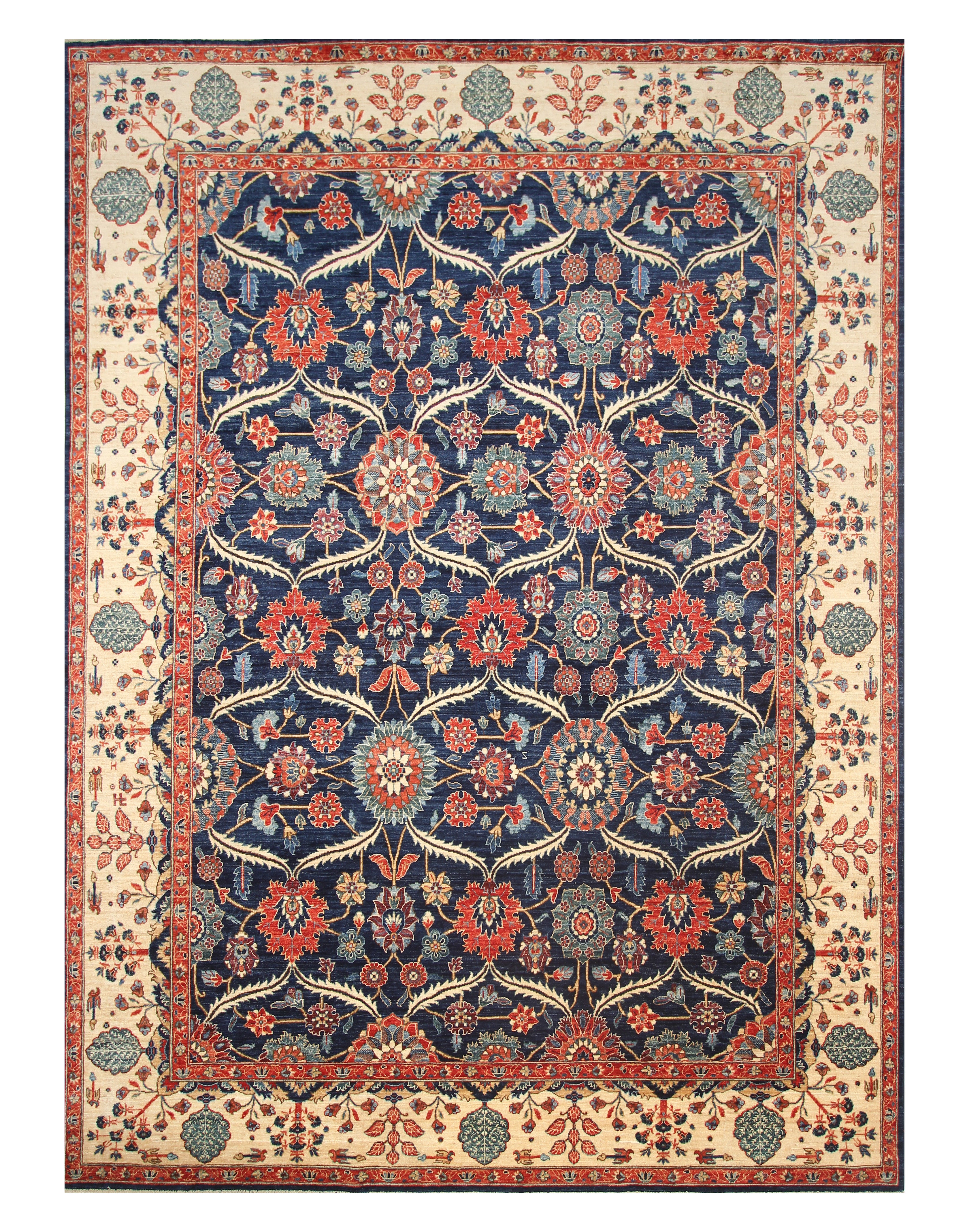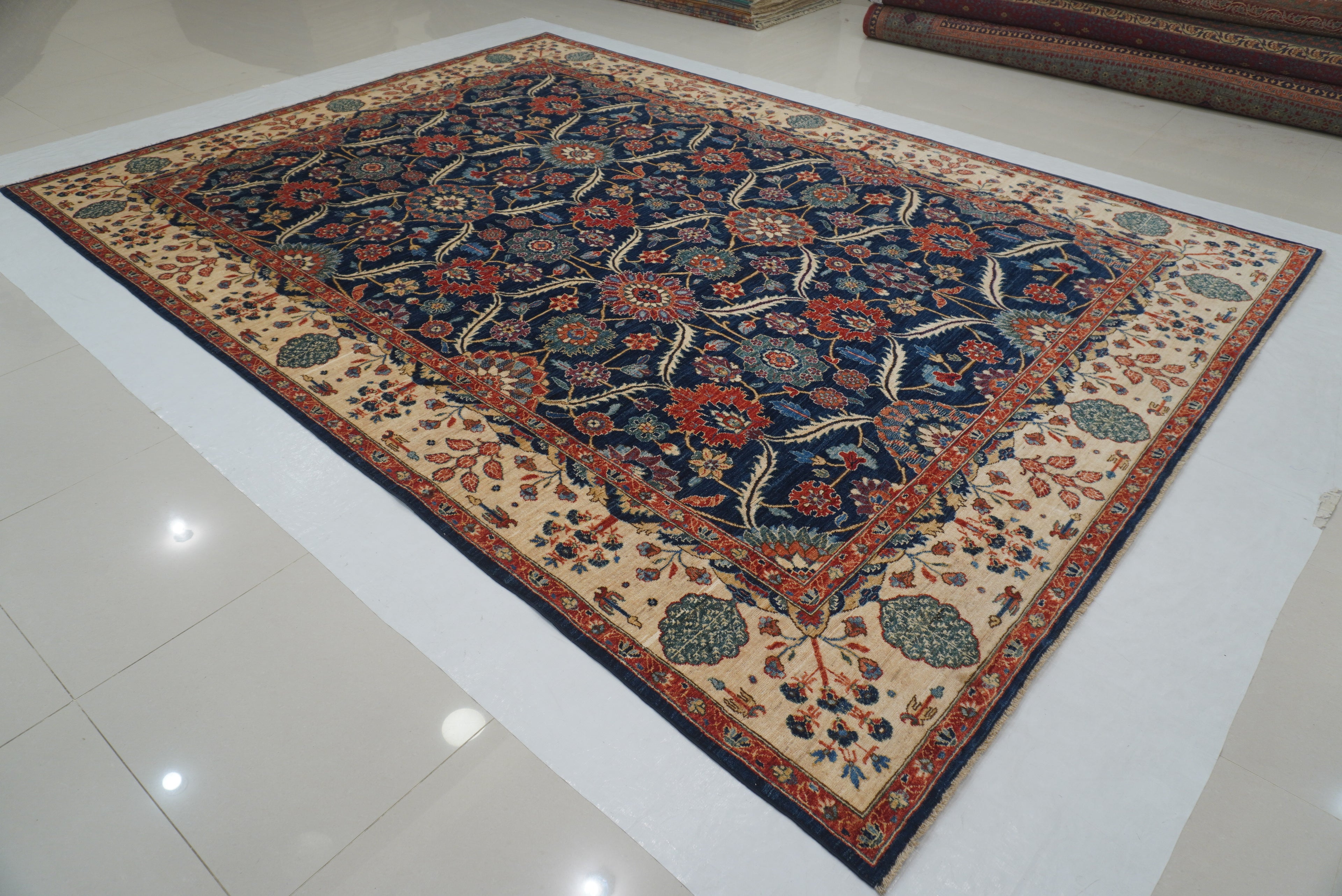 9x12 Navy Blue Afghan Hand Knotted Rug