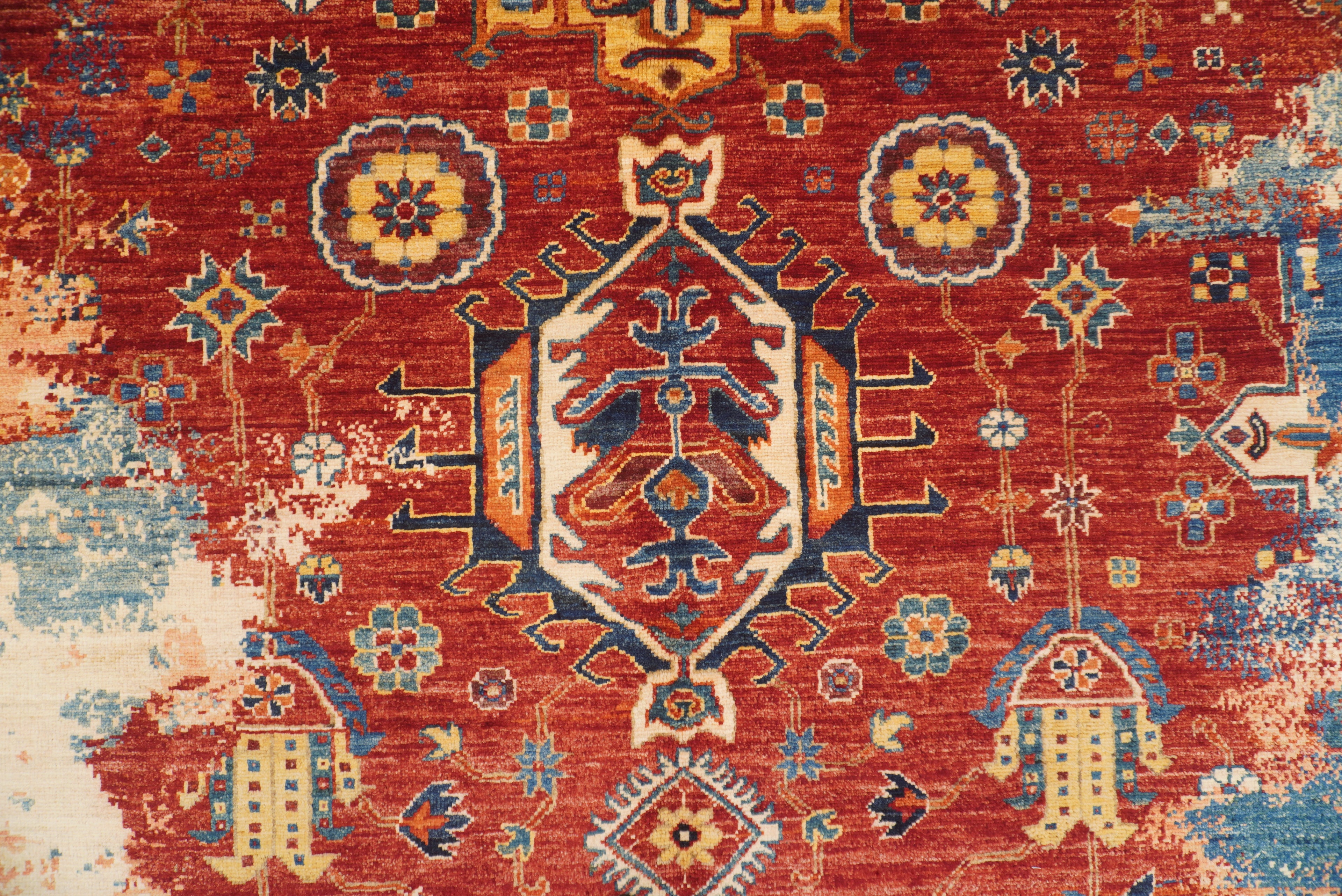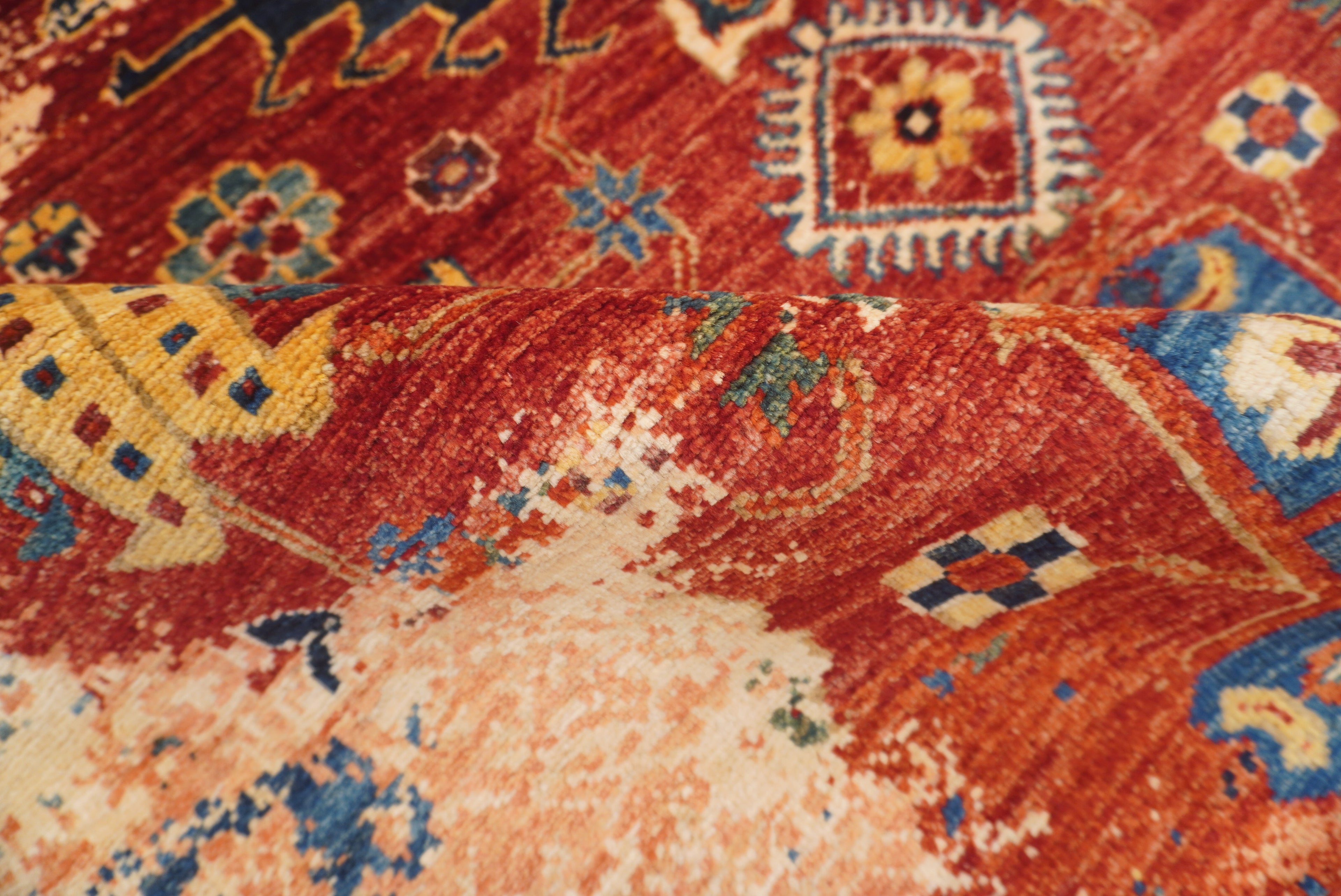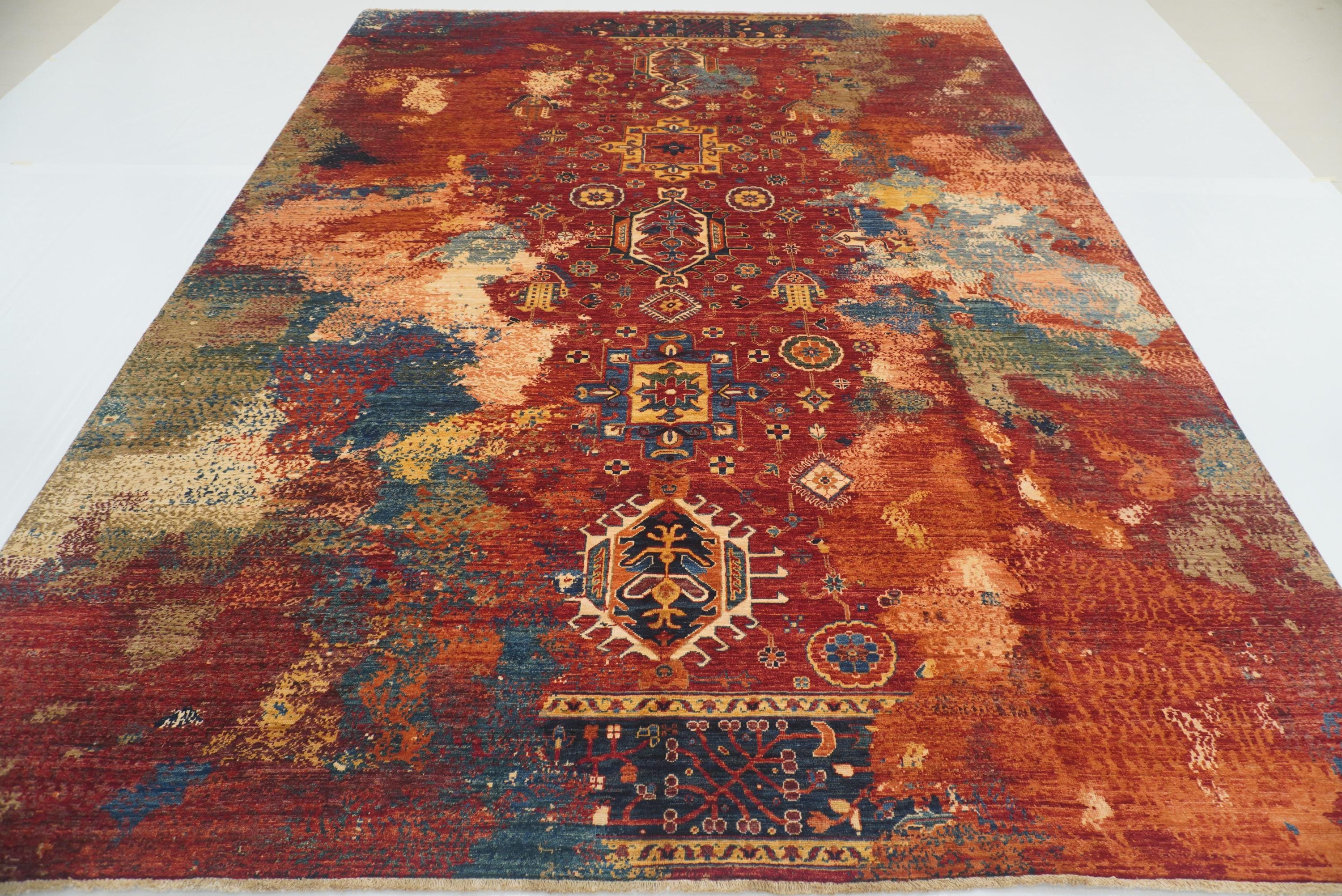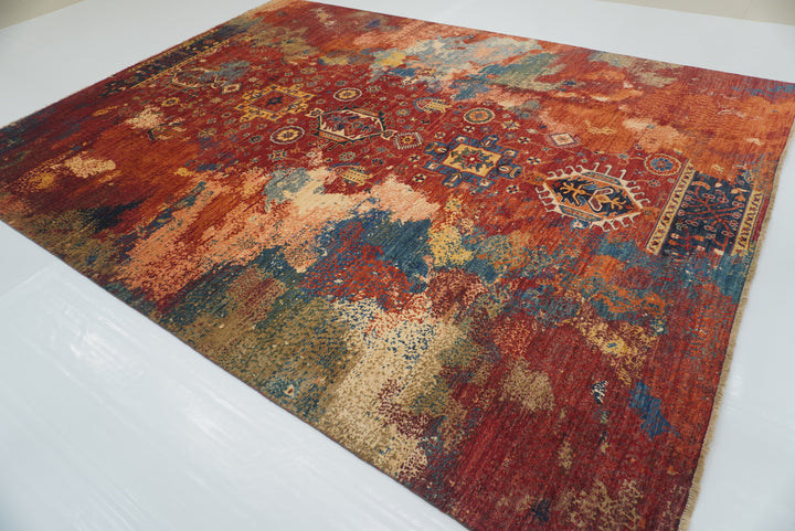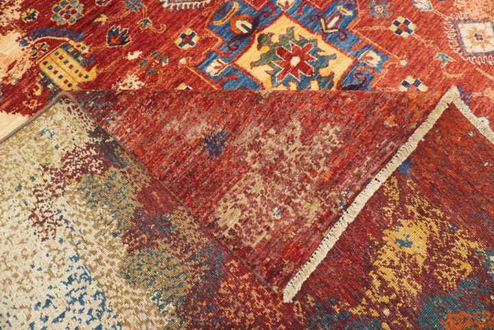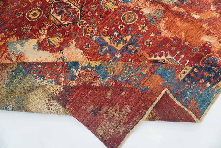 9x12 Red Modern Karaja Afghan Hand knotted Rug