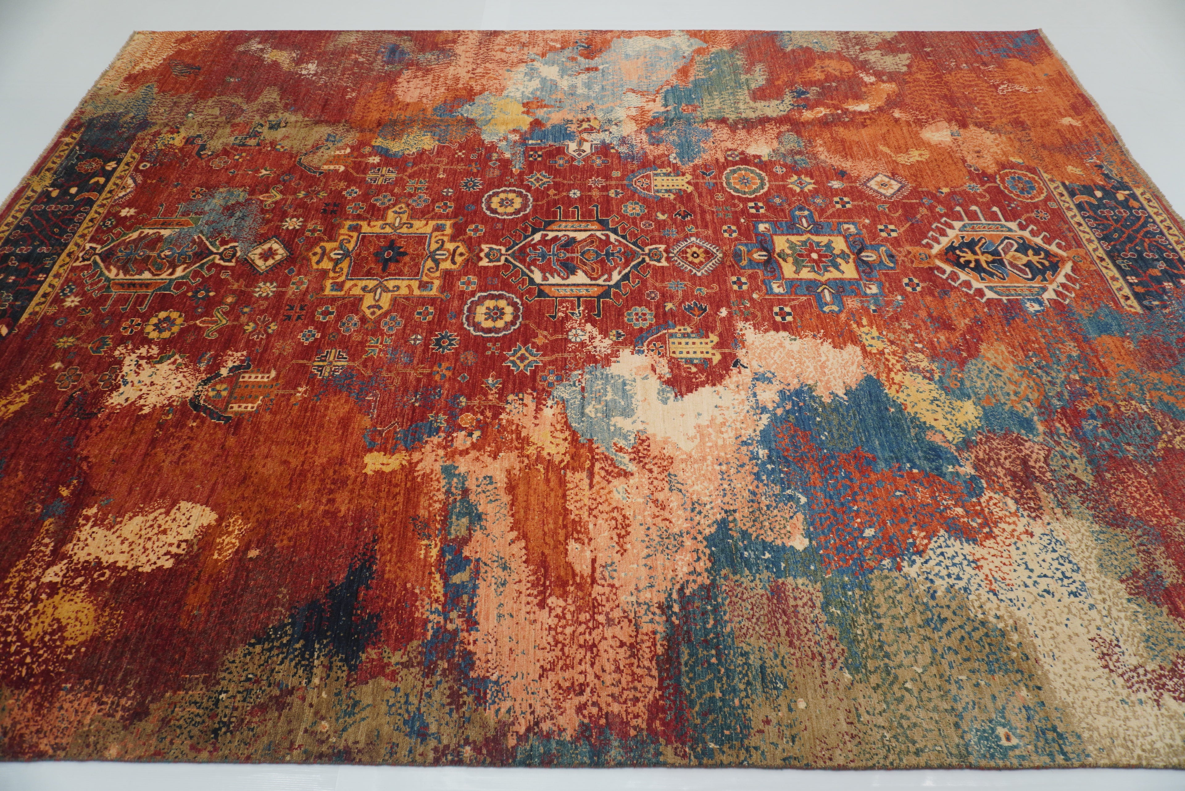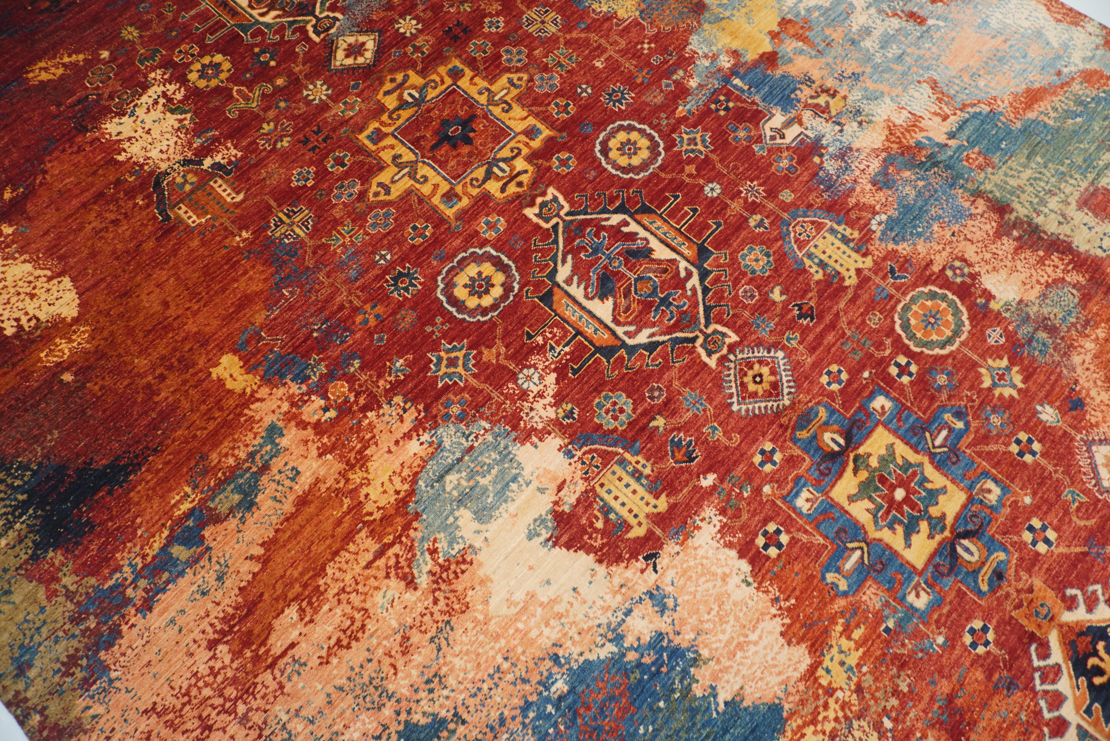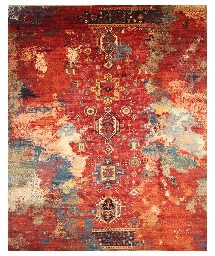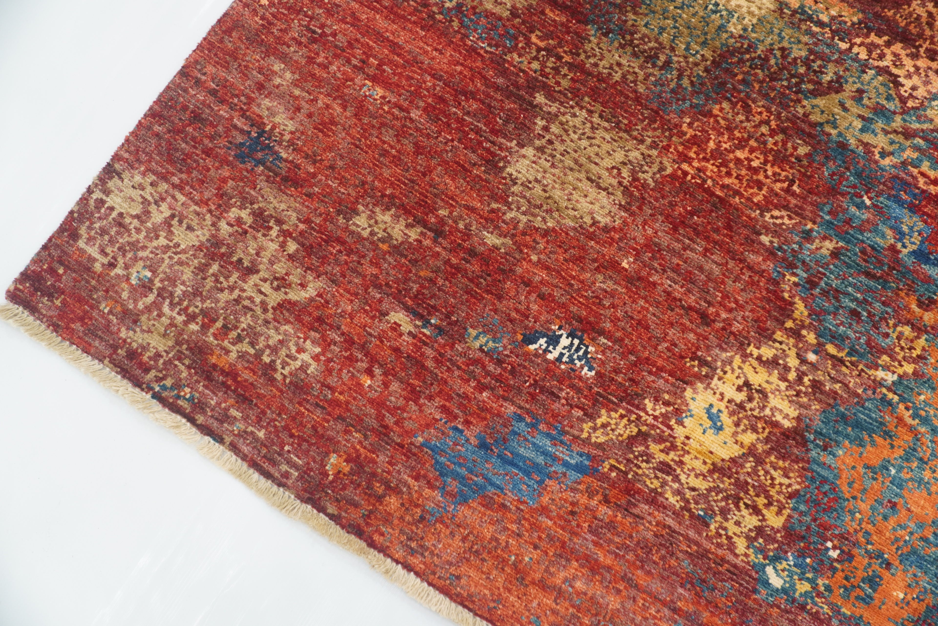 9x12 Red Modern Karaja Afghan Hand knotted Rug