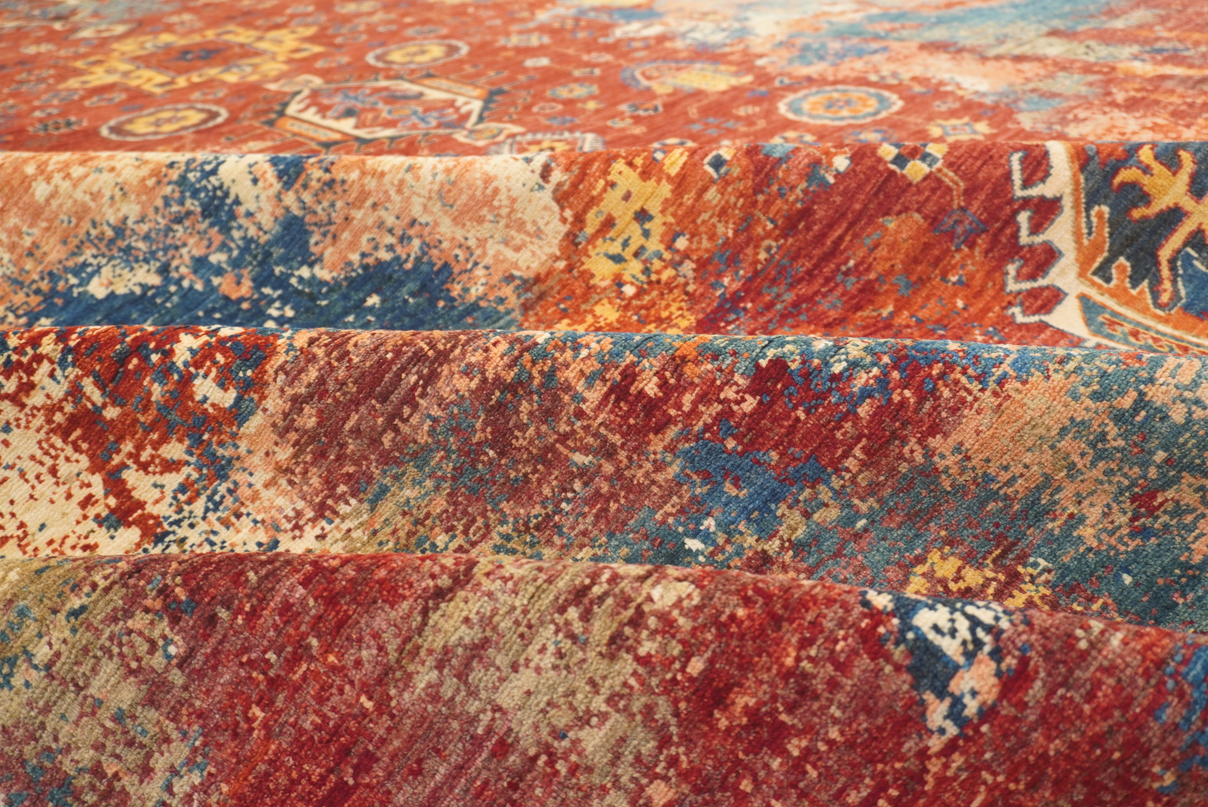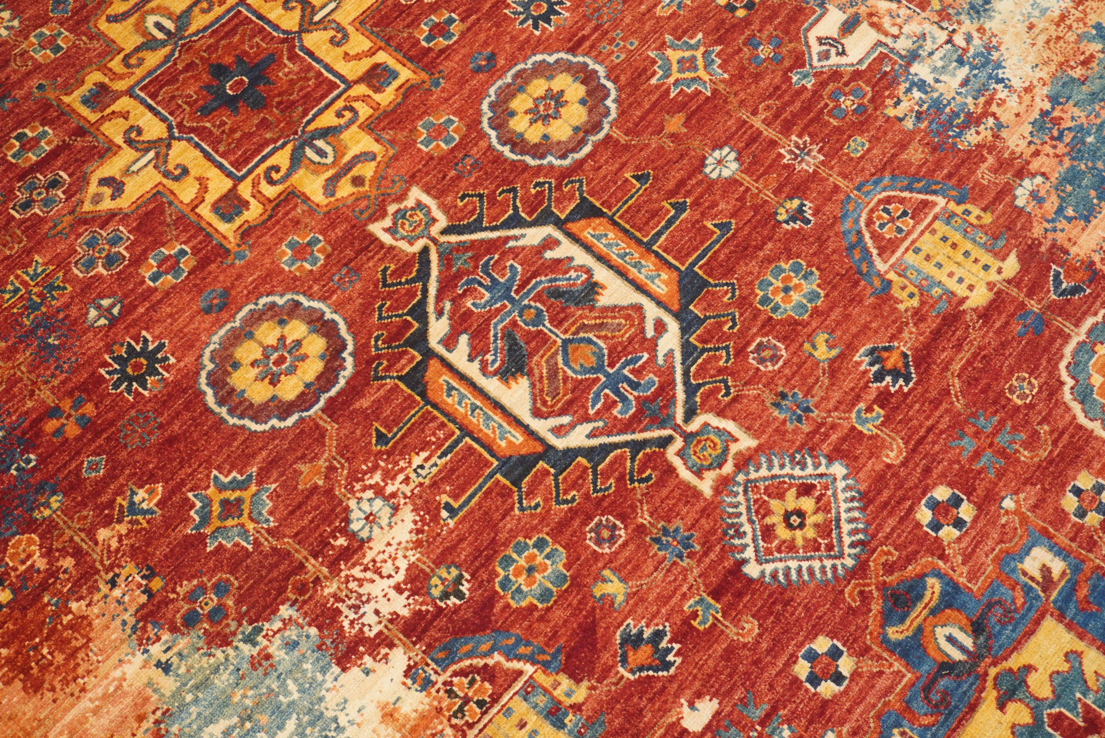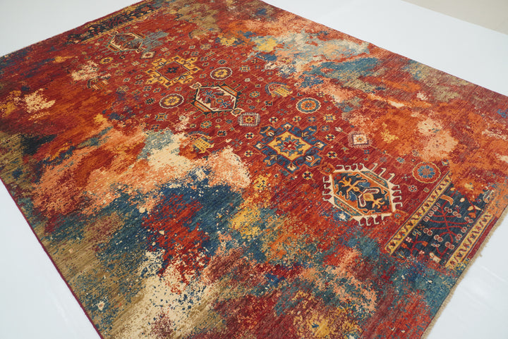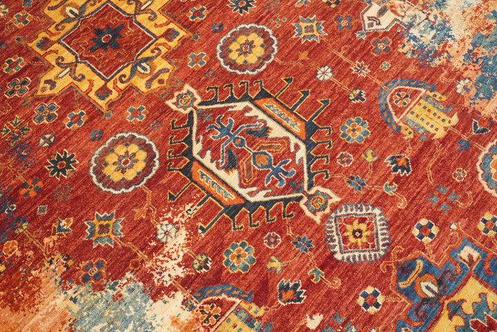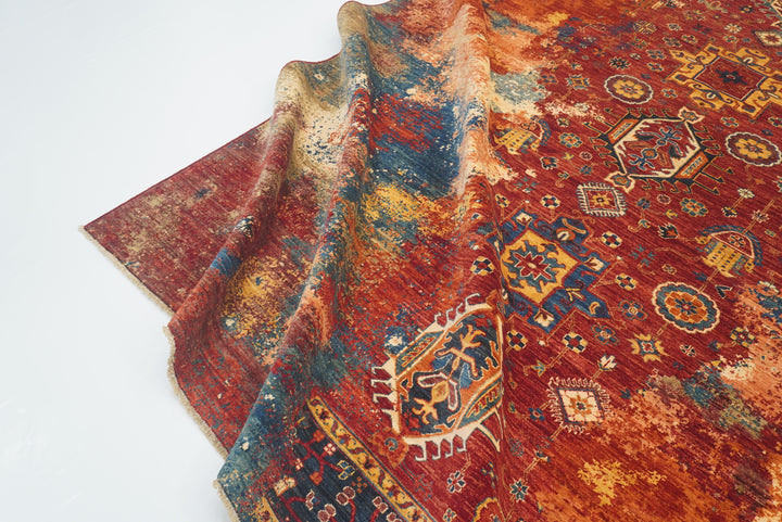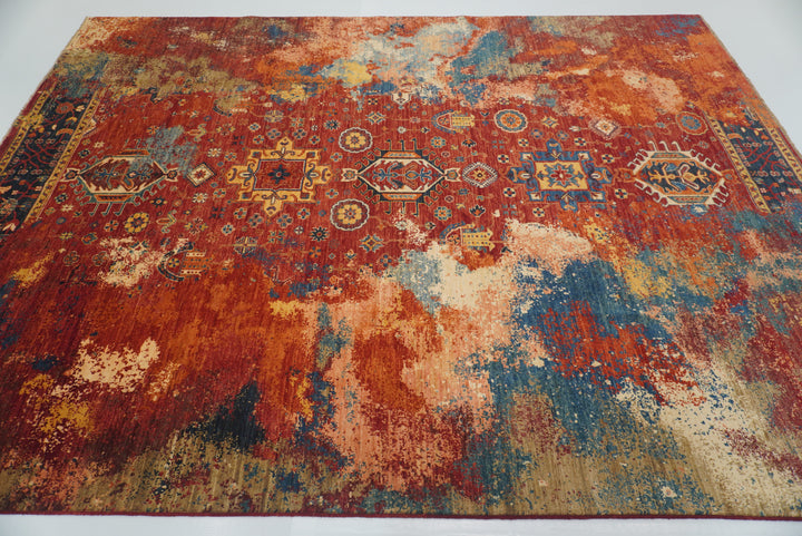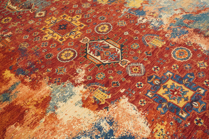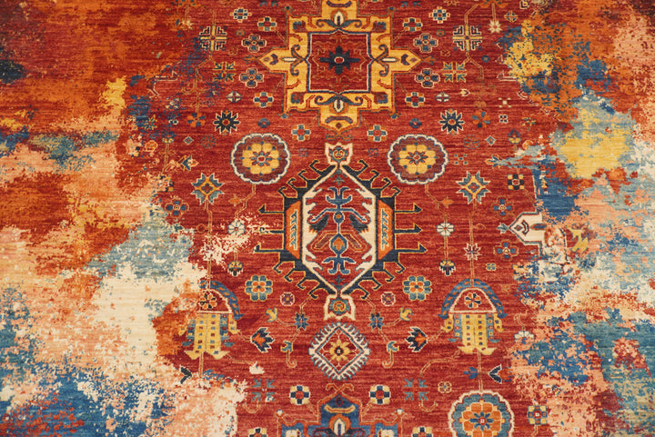 9x12 Red Modern Karaja Afghan Hand knotted Wool Rug