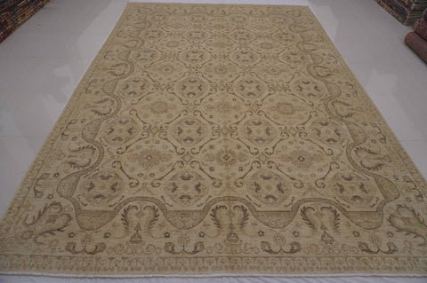 9x12 Vintage Muted Beige Persian Tabriz Hand knotted wool Rug