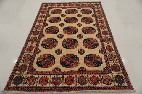 Beige 5x8 ft. Vintage Turkmen Afghan Hand Knotted Wool Rug